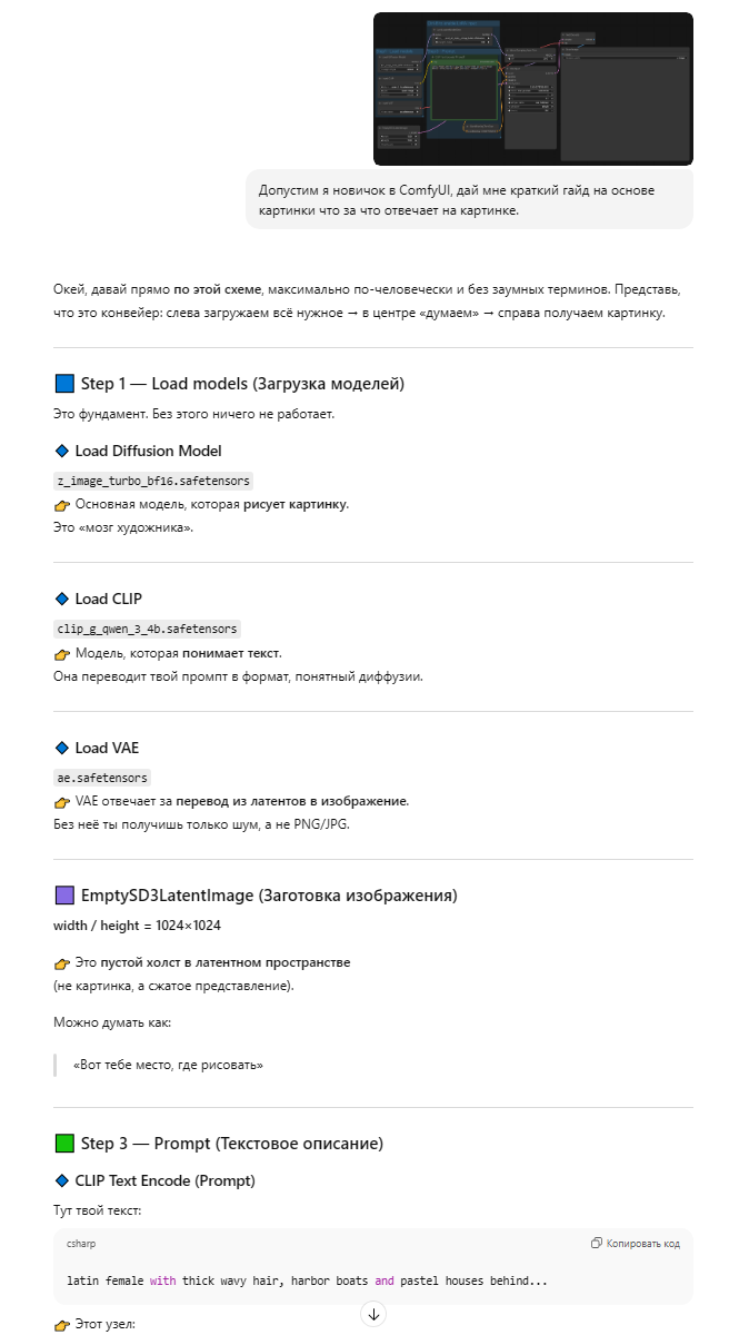 >А, ну чтобы разобраться как работает прога_нейм, мне нужно изучить еще 2-3-4. Ок, твою логику понял. 1. Я предложил поспрашивать гпт который тебе распишет все, никаких 2-3-4 прог нет. 2.К комфи есть инструкция где все описано такто.