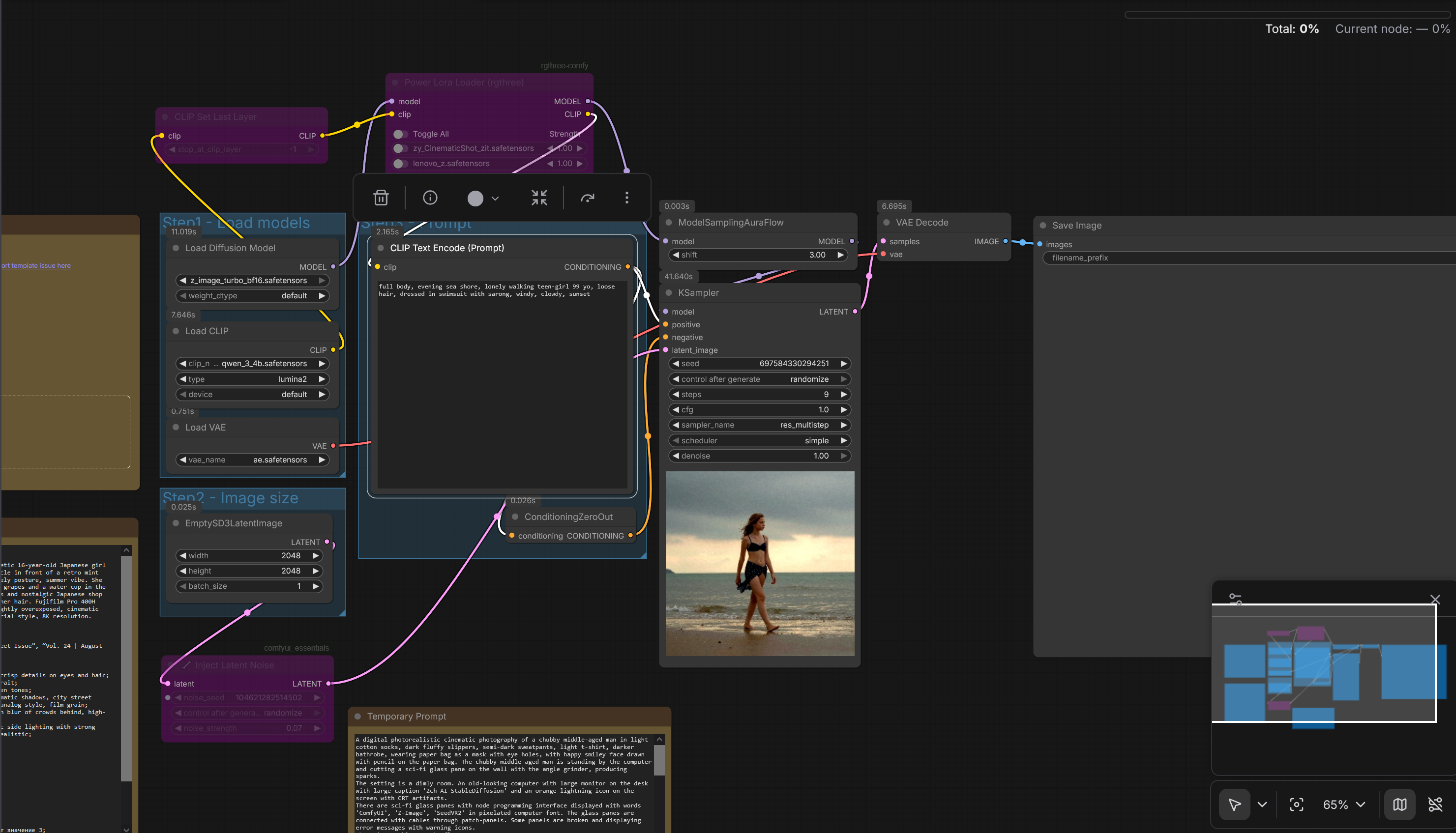 По-моему, всё не так делаешь. Когда начинаешь с азов, берёшь готовый workflow из ComfyUI TEMPLATES для Z-Image и смотришь на результаты.