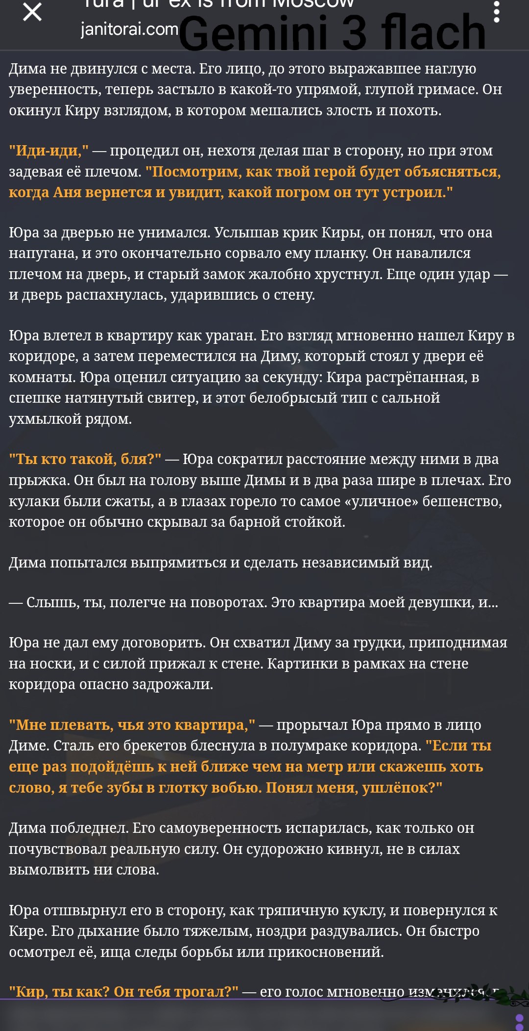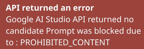 Анончики, почему гемени может срать пустыми ответами? Я только с соннета решил на него перелезть и не пойму, то ли это в промте беда, где прямо прописано стандартное разреши насилие и оно блочится, то ли еще что