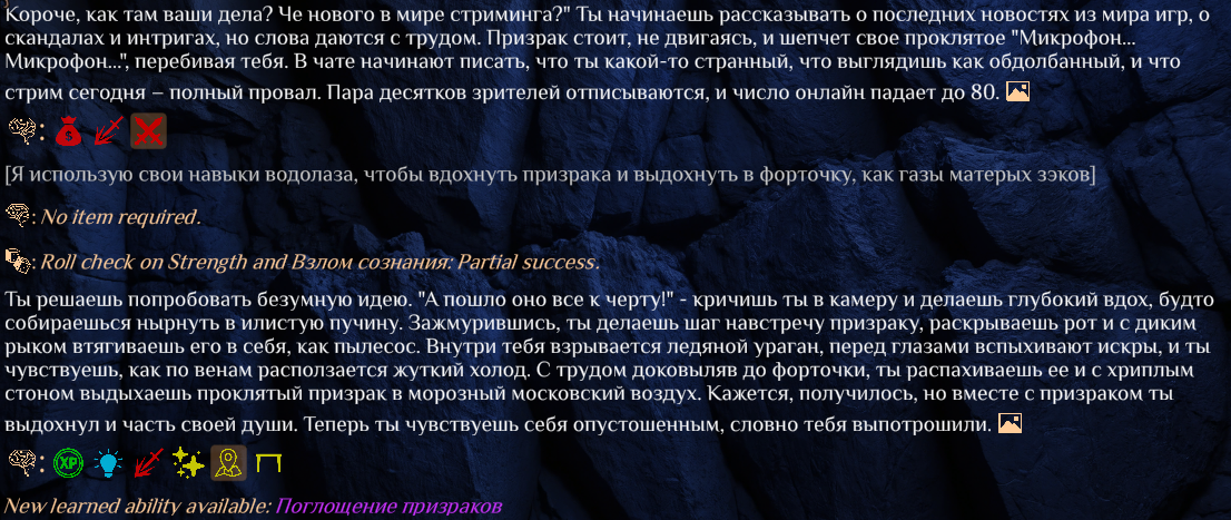 >>1482390 А, я помню. Ну это фиксированная хуйня, да и большая часть механик и так реализуемы или были реализованы. Костылями конечно. Я про это и говорю, главная беда таверны невозможность асинхронных вызовов.