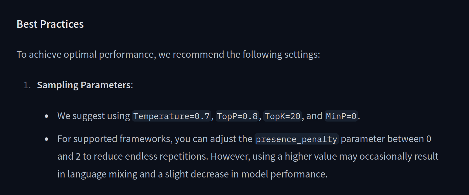 >>1485277 >Всегда было так, что 1 - стандартное значение Стандартное (а точнее рекомендованное разработчиком) значение в 1 - это только для Геммы. Для Квена, например, рекомендуется 0,7, а для Мистраля - вообще 0.15.