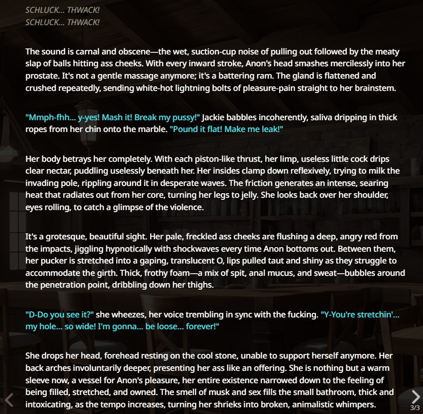 >>1488135 Даун, я литералли без префилла, а Джейл у меня буквально [Awaiting instructions] от ассистента и после него от юзера краткая инструкция как писать. Кум пишет отлично, слова не цензурит.