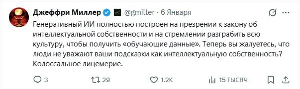 Затем началось быстрое развитие ИИ для корпоративных нужд и не только, многие компании впряглись в гонку за лидерство в отрасли (GPT, Gemini, Claude и остальные). Мощности стали бешено наращиваться, и теперь ИИ могут похвастаться лямом контекста и сумасшедшим количеством параметров вместо какие-нибудь 3/12/16B как те, что использовались людьми для РП.