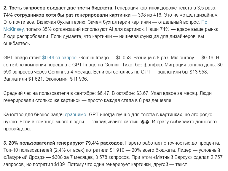 >>1495355 >>1495404 смотрел я эту статью, там другие выводы на самом деле. Стоит это всё очень дёшево, меньше 10 долларов в месяц на человека. То есть тут не те объёмы, когда важна экономия. Правда поправка, большинство там нейросетями почти не польльзуется, единичные запросы какие-то.