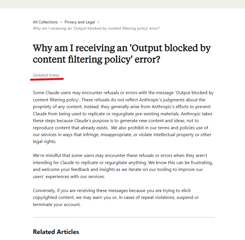 ложная тревога по фильтру на клодынях, пока что. а че это за хуйня тогда была? почему внешний фильтр сработал на апи антропиков? стриминг оборвался с ошибкой на пикриле, точно так же как и на гемини происходит, я вообще даже не знал что там какие то фильтры есть, есть инфа?