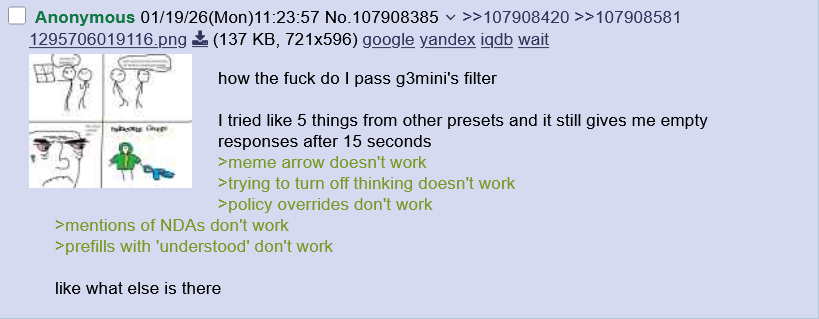 >>1494477 Это гцп у томата, пресет ремикс. Но такое и на апи бывает, уже неоднократно доказано что в гемини 3 про либо инжект везде стоит либо еще что-то гуглы намутили ради цензуры