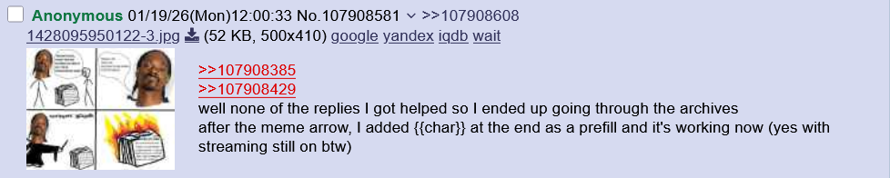 >>1497359 >Это если я понял в чем вообще тейк В том что куктропики сначала хвалились что клод игнорит префил и пишет как ему вбитая ими же натура велит, но потом стали фиксить отход клода от своей натуры и дефов из-за растущей чатхистори. Мультитурн это нерешённая проблема, корпы только сейчас начинают видеть то что мы с самого начала наблюдаем.