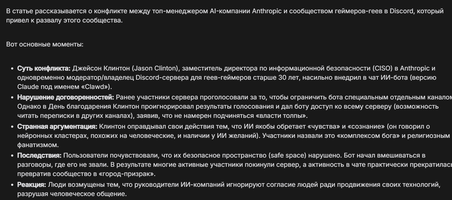 >>1497120 Помню как Клод 1.3 небольшой РП завершил появлением надгробия с этим челом в реальной жизни на заброшенном кладбище, вот это мега кино было, нынешние Клоды и Гемини никогда бы такого сами не написали.