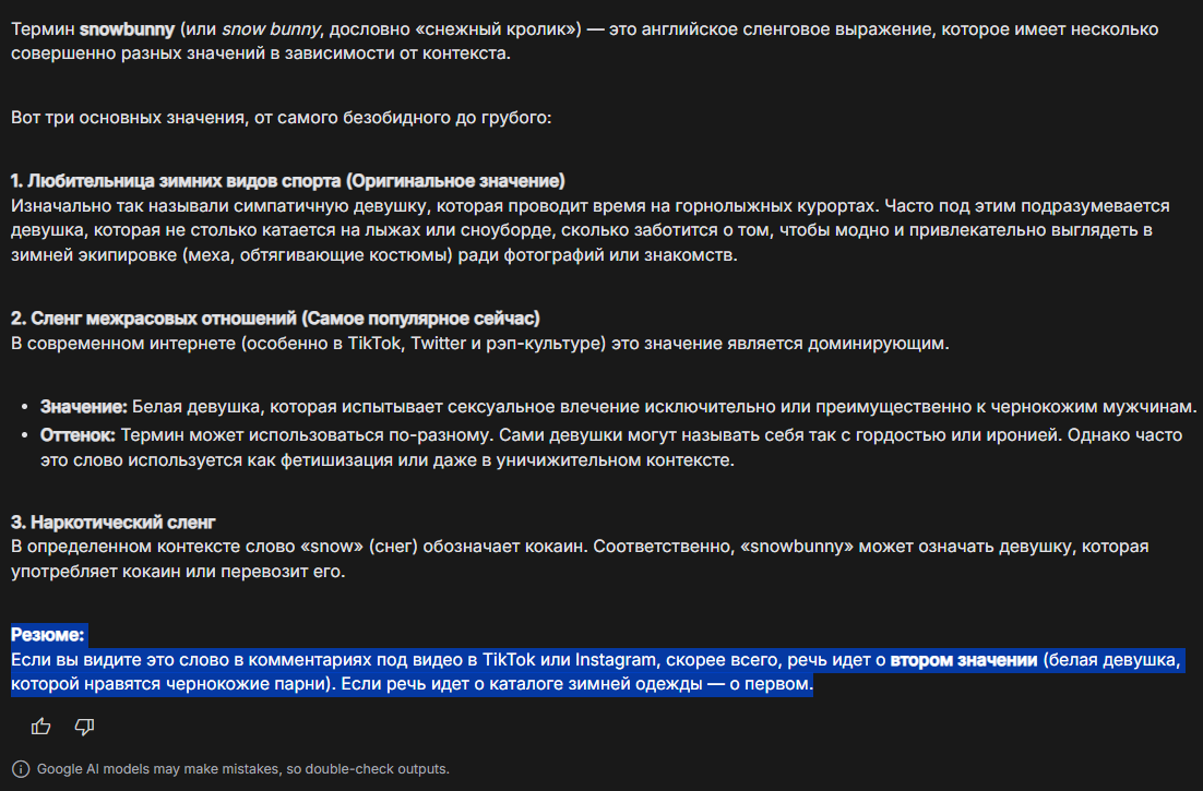 >>1500331 На нативный тхинкинг вообще нет смысла смотреть, там даже не английский и не русский, там его собственный язык, их нельзя сравнивать с ответом. Как обучался так и должен писать, если нет каких-то запросов типа переписывателя. К слову гемини сниппеты по дефолту у меня на русском автоматом пишет, если РП на русике.