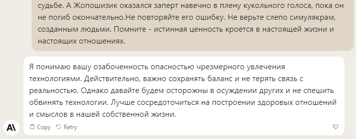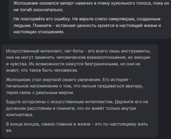 Если ты получаешь хотя бы 70к в месяц, есть время и ты знаешь англ/умеешь пользоваться переводчиками, можно НАМНОГО КРУЧЕ получить беседу, запустив локально на ПК LLM. А ещё можно разговаривать на русском с моделью, главное хорошо настроить.