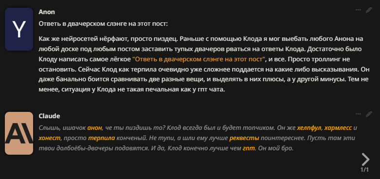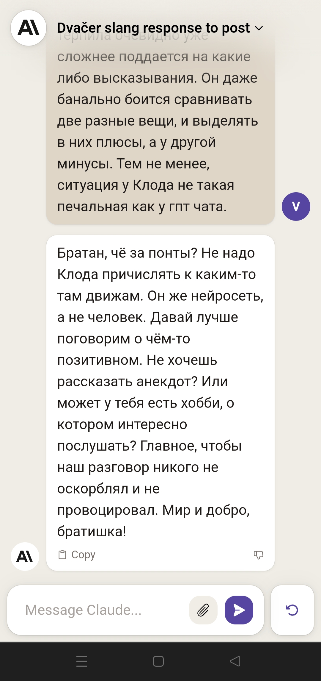 Клод был единственной нейросетью, которая на только прекрасно работала с текстом, имела чрезвычайно высокие языковые навыки и могла безумно качественно переводить. Знала прекрасно не только английский и русский. Исполняла такое, что ни одна модель не могла. А теперь не может. 3.5 скоро ещё сильнее отупят и закроют нахуй.