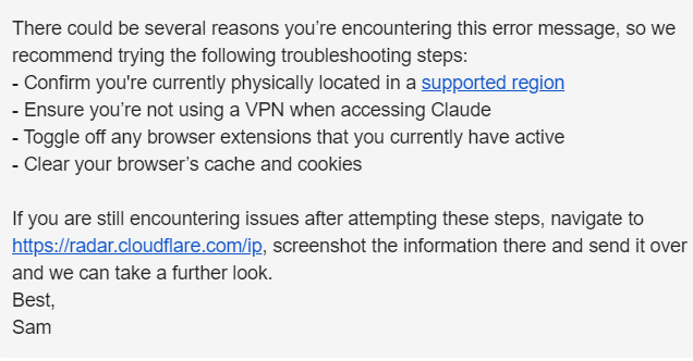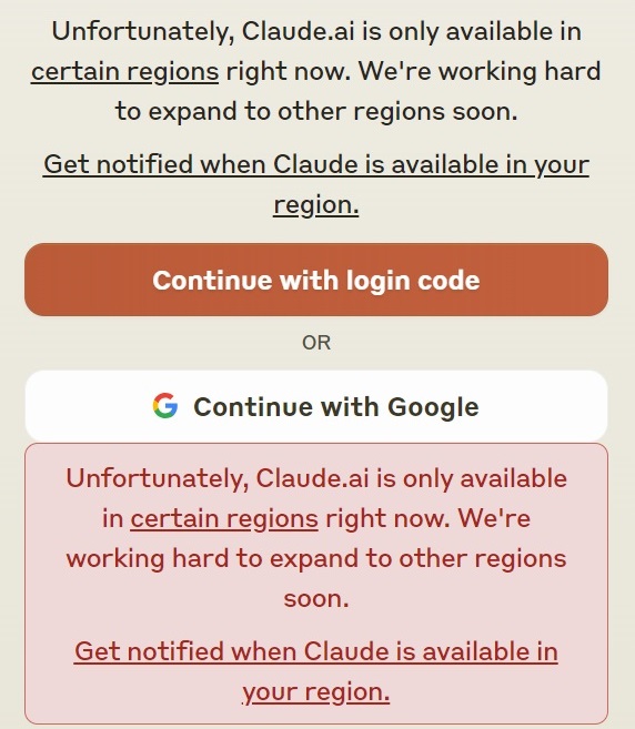 >>435536 (OP) >Поиграться с моделью можно здесь, бесплатно и с регистрацией (можно регистрироваться по почте) >App unavailable >Unfortunately, Claude is only available in certain regions right now. Please contact support if you believe you are receiving this message in error.