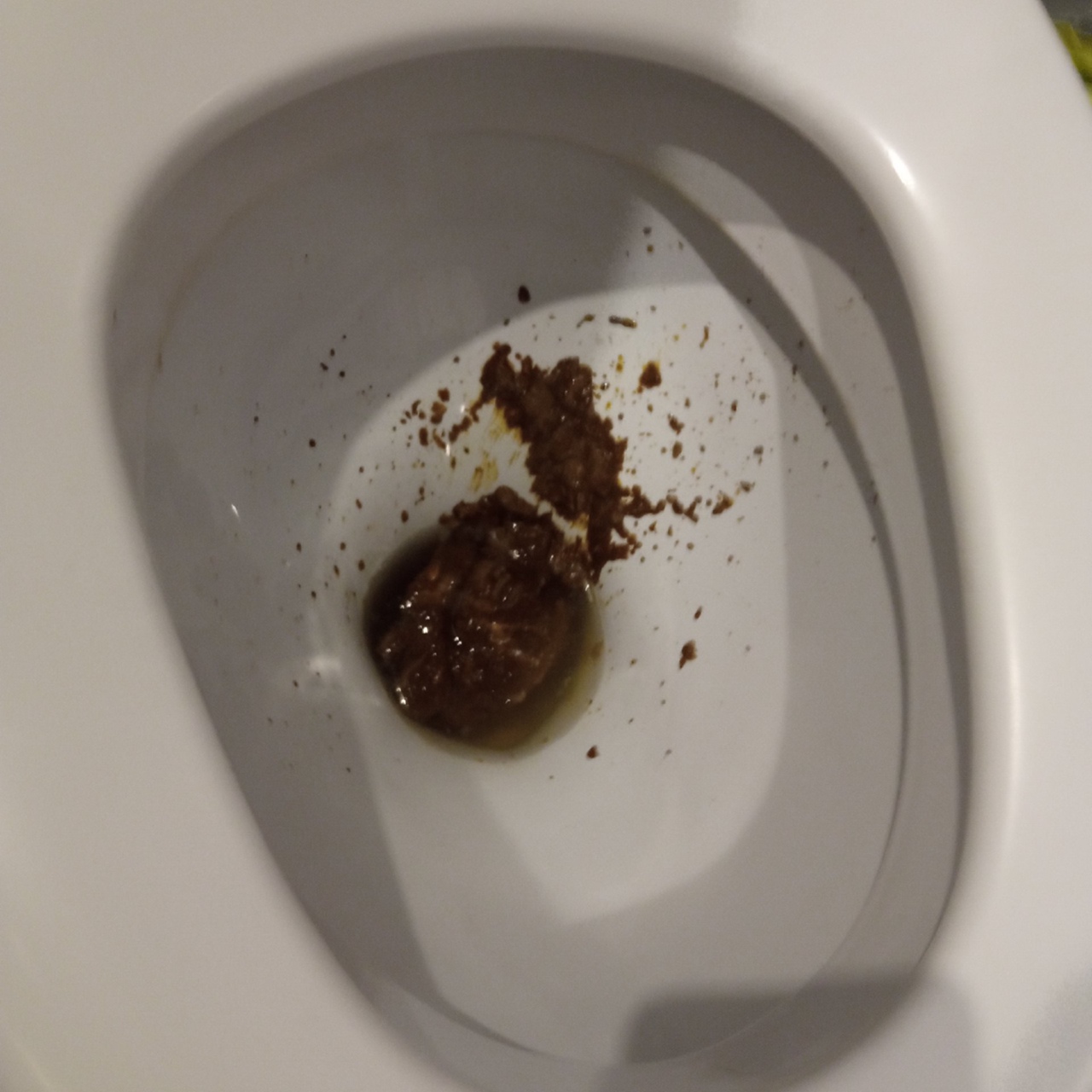 Здарова алкаши и алкашихи. Хочу рассказать историю о своей недавней и первой похмельной пробке. Недавно мать пожарила шашлык и мы с кентом купили пива. Пиво дохуя было. Мы очень сильно накидались, а когда нам приспичело пожрать шашлык он уже остыл и был в холодильнике. Ясен хуй мы сожрали его, но мы его не грели. Утром мой желудок ахуел и на толчке я начал серить. И одна всё никак не вылазила из моей прямой кишки. Когда вылезла из моей жопы потекла струйка шоколадного чудо коктейля. Мой анус очень сильно болел весь следующий день. Так как данная пробка была камнем от шашлыка. Фотка этого ебучего камня что размял мой анус закрепил.