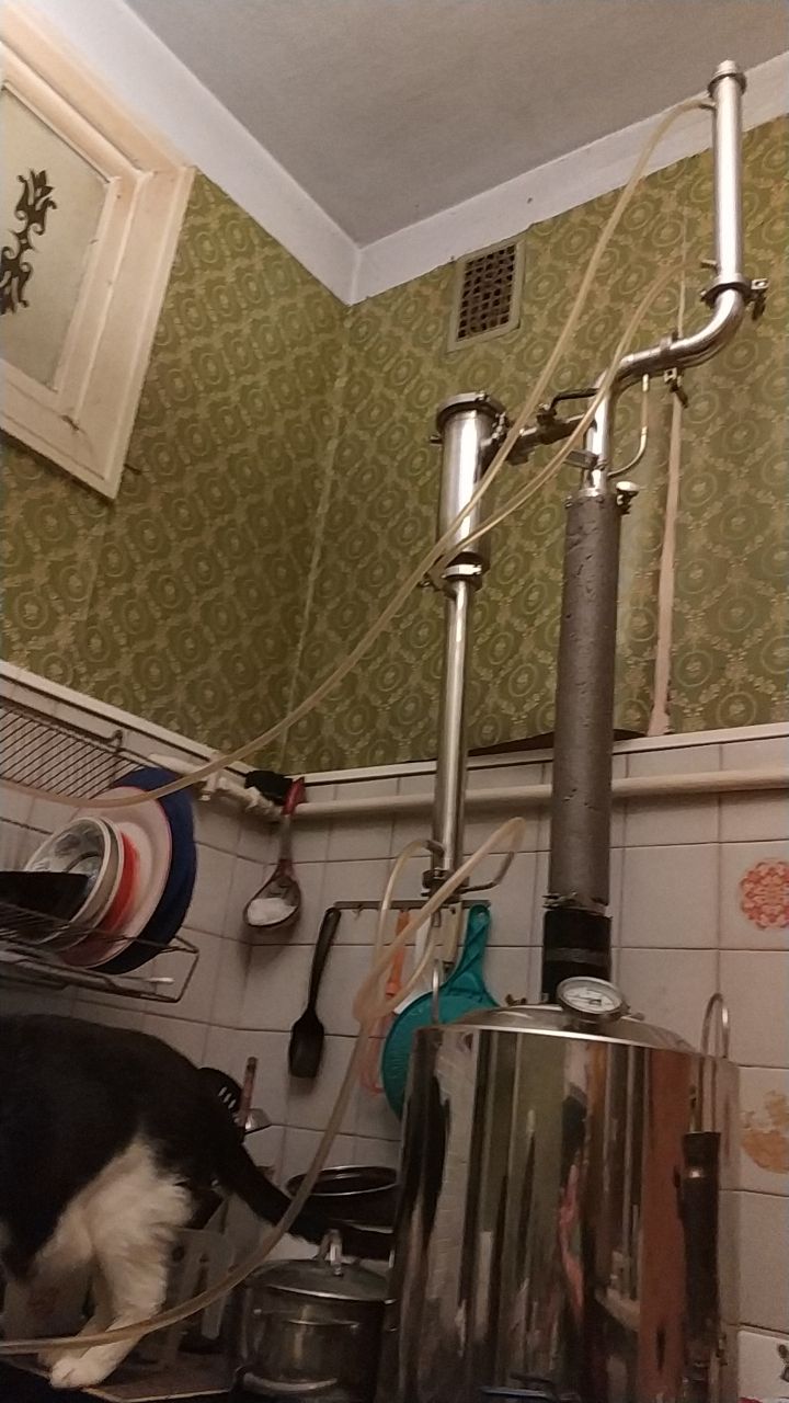 >>1070514 Не три тарелки. Три колонны. 750 мм рабочая длина каждой плюс стыки Общая высота метра два с половиной только колонн. >>1070519 >Анон в каком то предыдущем треде пояснял за тарельчатые колонны. Там выходило что эти колонны для спирта как такового не нужны (для 96,6 чистого). Так и есть. У этого уникума по очистке аналог примерно 70-80 сантиметров спн. Другое дело что удерживающая способность совсем другая, флегмы в колоннах висит чуть ли не литры.