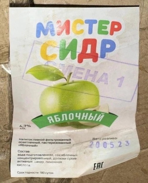 Кстати, если рассмотреть состав Мистера Сидра, то можно с довольно большой долей уверенности рассуждать, что это ложь и он был суррогатом еще до того как метиловый спирт спутали с этиловым.