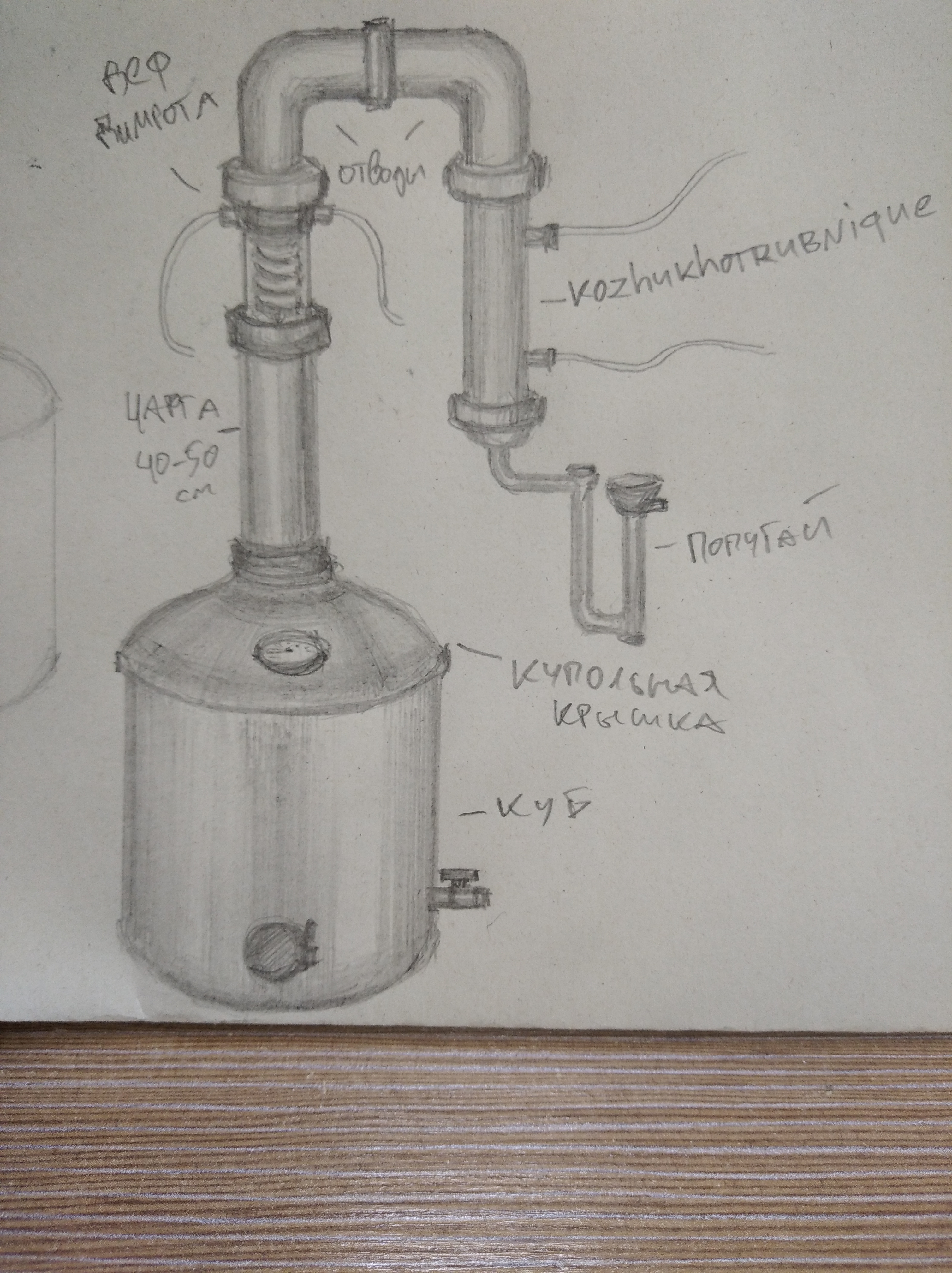 >>1300630 Аламбик. Берешь и собираешь его максимально близкую имитацию из конструктора на клампах. Куб, купол, шлем (с резким расширением, объем вторичен), конус, шея с небольшим наклоном, кожухотрубник вертикально вниз. Попугай на емкости. Чем шире и ниже куб - тем лучше.