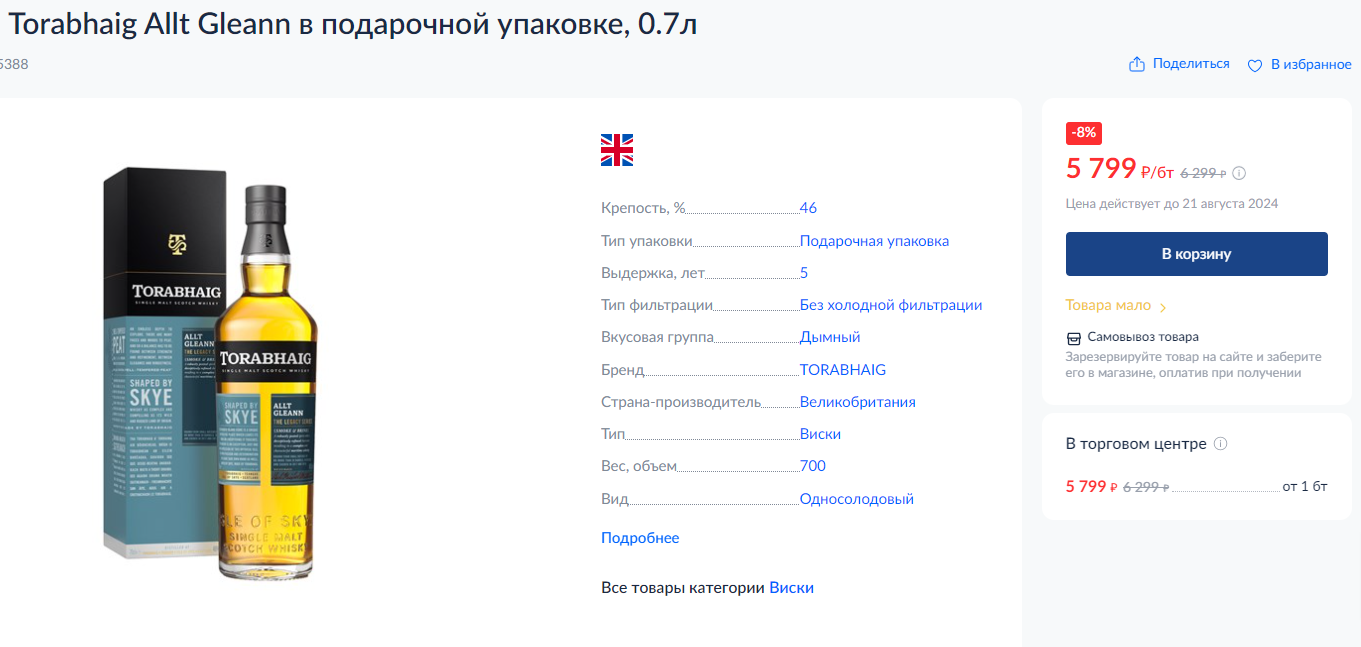 Еще в местной сети есть вот эта 63 градусная лють за 4500. Может попробовать? Примечательно, что средняя цена в ЕС - 60 евро, т.е. у нас отличный ценник. Но 63%... Как это пить? Ведь всем известно, что разбавлять виски грешно - Дионис покарает.