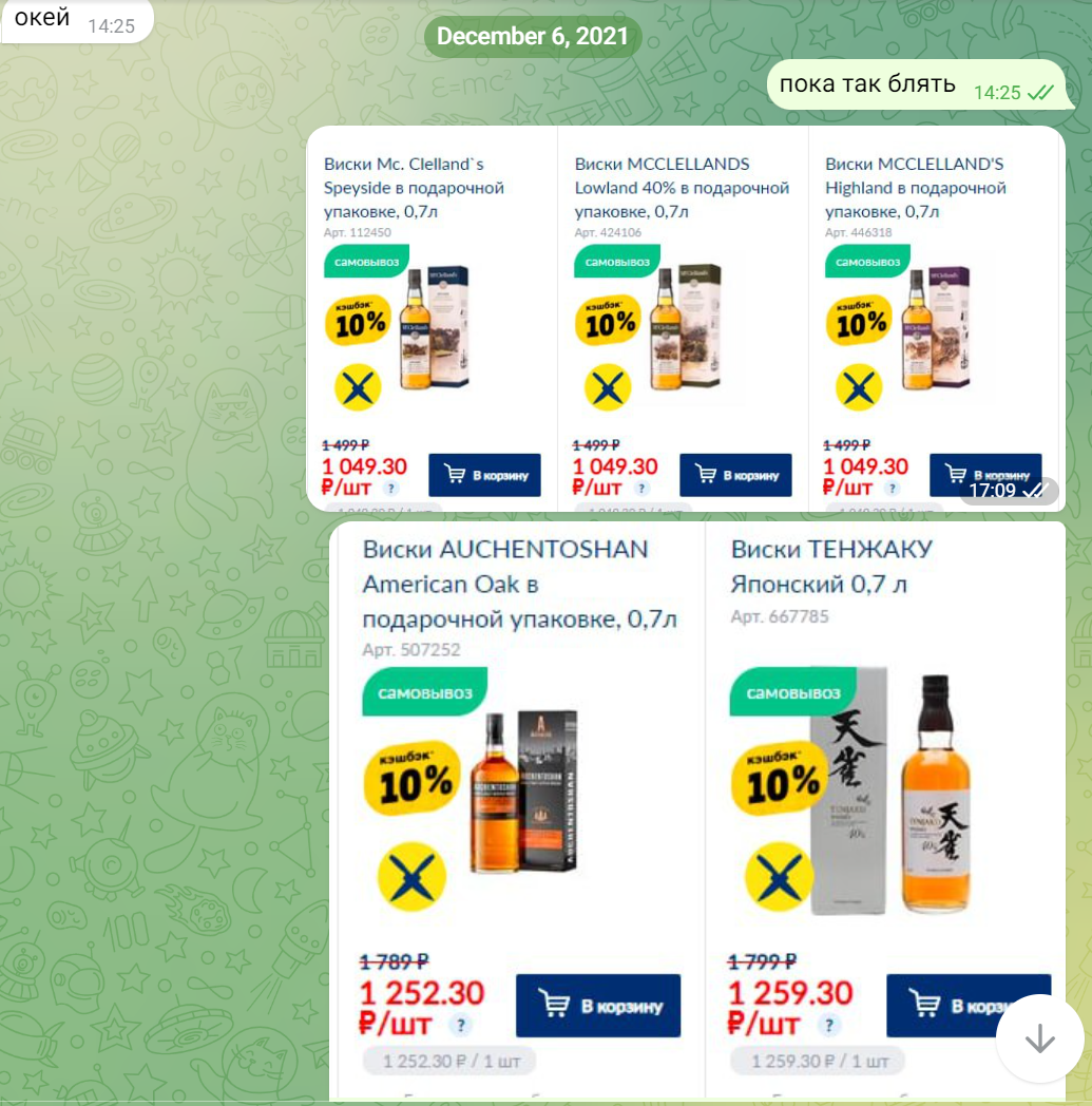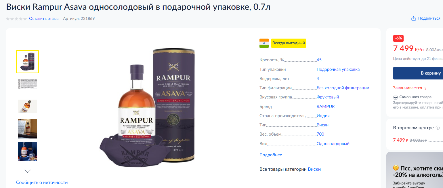 >>1505745 Есть местная сеть Сомелье. Ассортимент очень широкий, много хитрожопых виски/коньяков/бренди/текил, гиперы типа Метро и Ленты не сравнятся. Но нюанс в оверпрайснутых ценниках, я туда не хожу. Лучшие цены всегда были и будут в фед сетях.