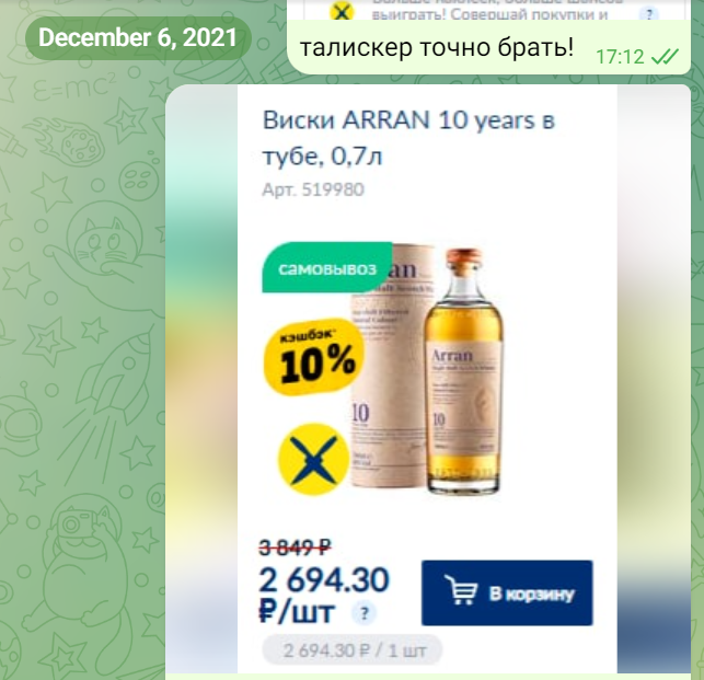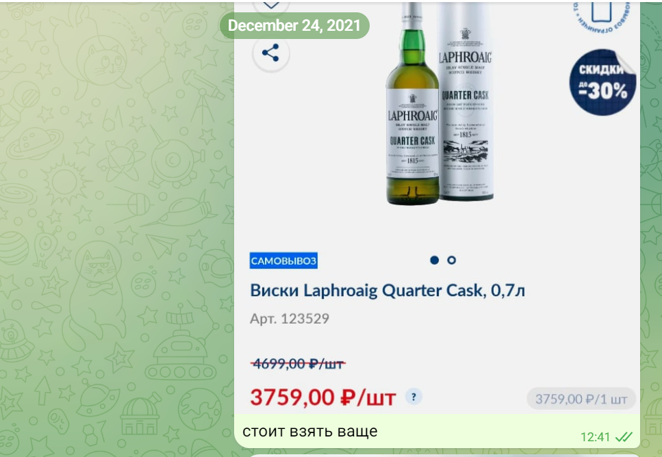 КБ лаф 10 недорого в принципе и бывает чивас 18 норм прайс до 6к. Хоть и купаж, но самый питкий из базы. Бристоль вроде повторяет ассортимент КБ.