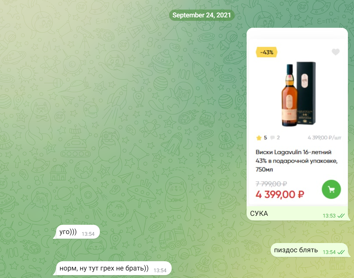 Одни упорно обсуждают какой сингл им взять до 2к (зачем вы пьете виски, если у вас нет денег на нормальный продукт?) Другие пафосно эстетствуют (самоутверждаться сюда пришли?) Третьи троллят