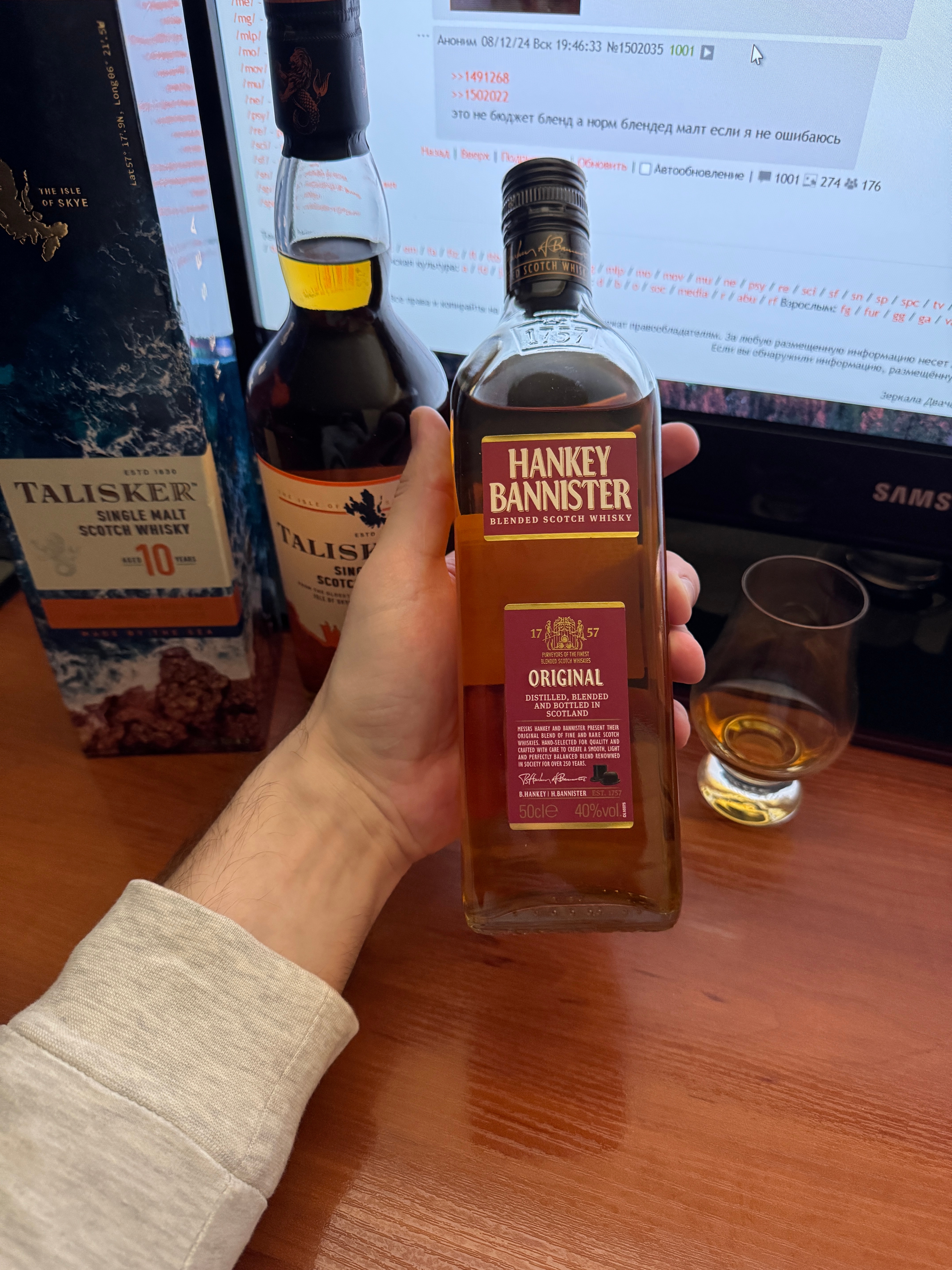 >>1505691 Первый - бюджетный ирландский бленд, типичная плоская, бесхарактерная водичка, идеален для коктейлей. Второй - турбо бюджетный шотландский бленд, дешевое пойло как замена водке. >И с чем посоветуете мешать ? Ни с чем. Но если и мешать, то только с чистой негазированной водой. А если хочешь, чтобы вечер закончился быстрее, то допускается пиво, т.к. пиво - это сути полуфабрикат виски. Если денег мало, возьми Teachers - это бюджетный дымник, довольно жирный для своей цены, за счет 40% солодовых спиртов. Или Famous Grouse - неплохой бленд с фруктовыми нотками. А лучше докинуть денег, и взять Black Label - вкусненький дымник, и просто универсальный вариант на все случаи жизни, в Бристоле сейчас есть по 2300/0.7.