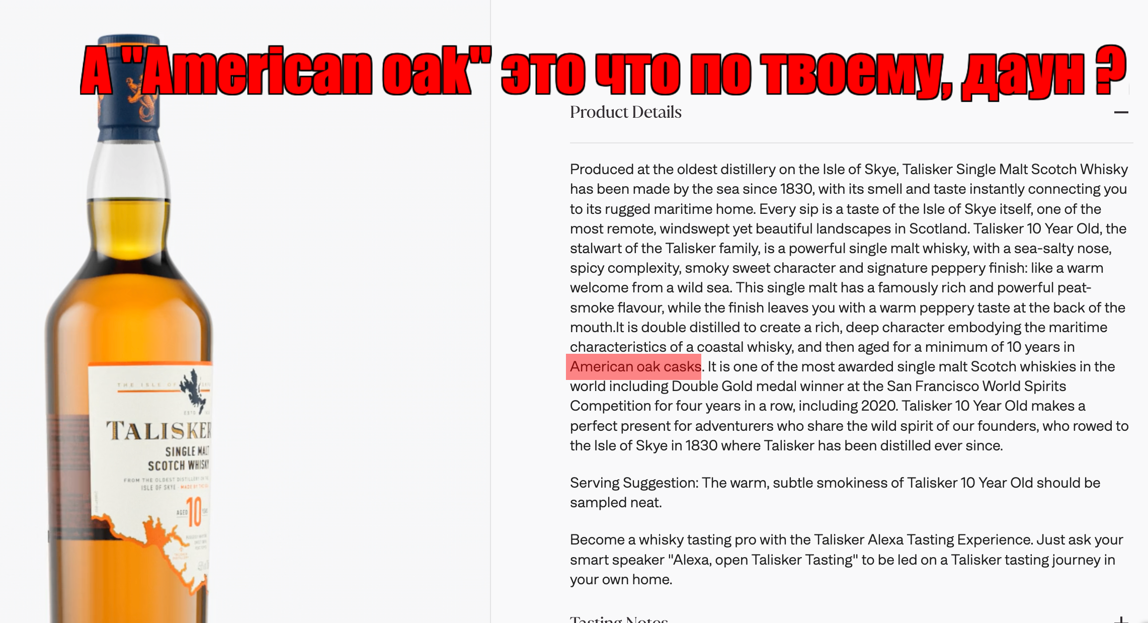 Каким местом талискер в хайленд попал - загадка. Почему обосран мак - понятно. Ты не пил никогда его, прочел пару статей и все. Или пил 2-3 релиза, типа DC и ЕС двенашки и может еще gold. Это говорит (боже какая банальность) что ты не можешь его позволить и это не говорит, что мак для понторезов и мажоров. У мака полно провальных релизов, как и у всех курень, но мак это эталонный базовый виски, купив который, ты получаешь реально вкусный хайленд и топ за свои бабки. До сво. Сейчас мак оверпрайс. Мак 12 шерри - отвал башки. 18 шерри - отвал неба аллаха и прочего. Мак рэр - отвал вселенной.