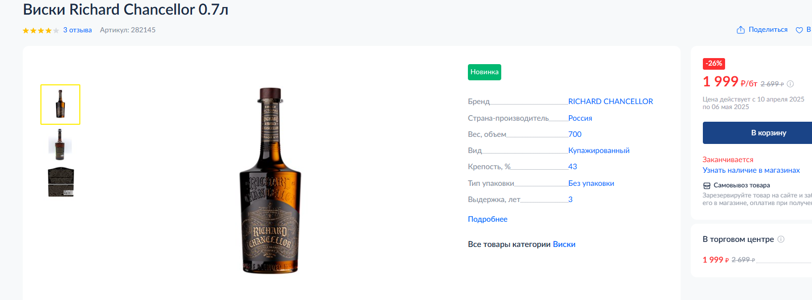 >>1506222 Это солодовая Кемля разведённая каким то достаточно жирным (20+ процентов) по содержанию солодовых спиртов шотландским блендом. Марку балка не раскрыли. Так что да, балк - нонейм. >>1506223 В регионе производства появились и то только в фирменных магазинах производителя. Скорее всего да, в остальных регионах мало где будут. Джины мордовские за пределами региона только в перекрестках например, зерновые и сливовые белые дистилляты - только в спарах.