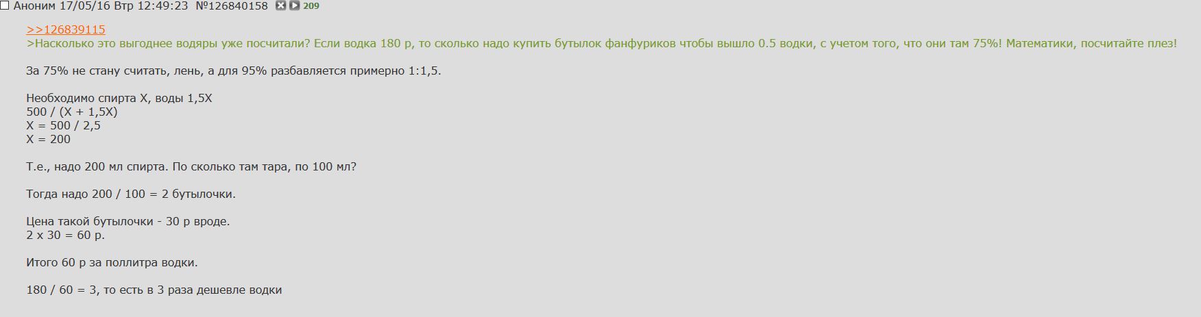 >>260026 Нашёл. И как меня эта фраза должна смутить, если она там описывает пропорции в рецепте настойки? >>259993 Дороже, чем другие фанфурики - около 30 рублей, но и вставляет лучше, ибо 90%, а не 75, как во многих.