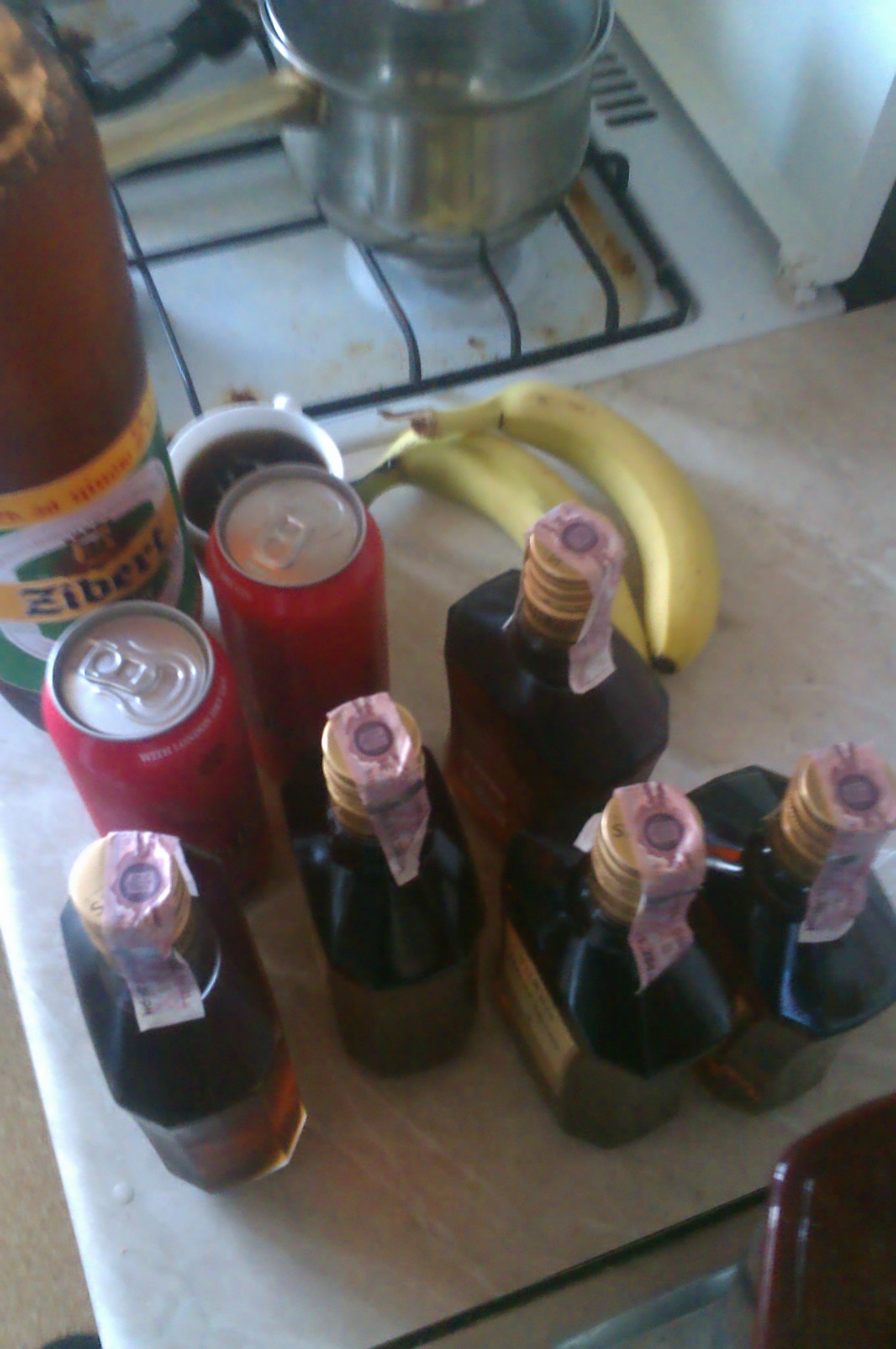 >>287 1. текила репосадо. со скелетами на этикетке, название не помню. стоит полная на две терти в холодильнике. 2. Еще одна бутылка текилы валяется в диване. сауза. 3. две бутылки баккарди по 0, 75 - 8летний и золотой, оба в подарочных упаковках. стоят с прошлого года. 4. амаретто, ксу-ксу, какой то немецкий молочно-шоколадный ликер - стоят, иногда употребляем с тян.