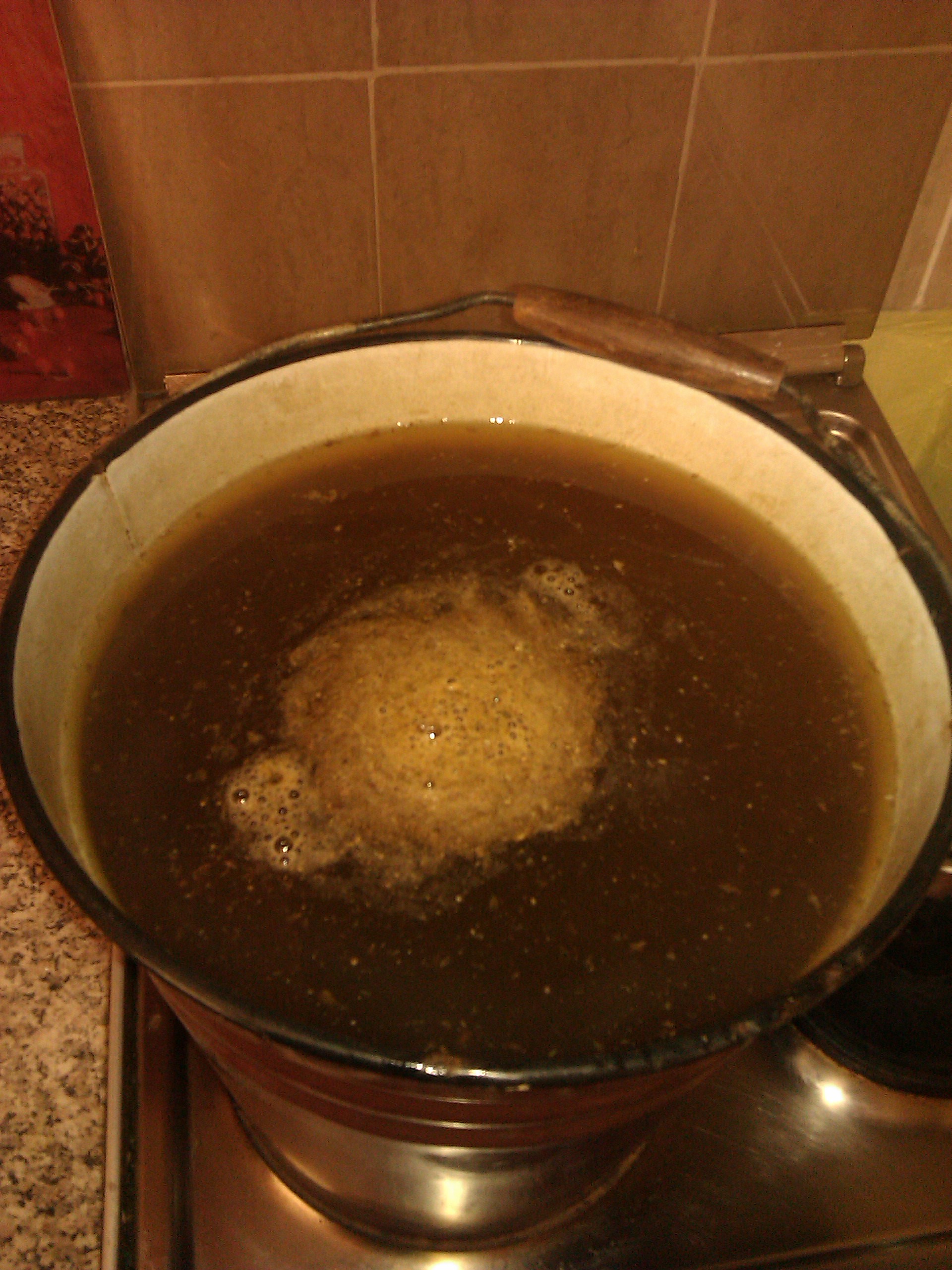 Братва, нужен совет! Поставил в общем я брагу на виноградных выжимках, вместо сахара использовал старый мед и варенье. Суть вопроса: как это все дело фильтровать и отцеживать потом? Если обычную брагу можно отсосать при помощи сообщающихся сосудов то тут сверху шапка из мезги. Снимать ее и отжимать вручную что ли?