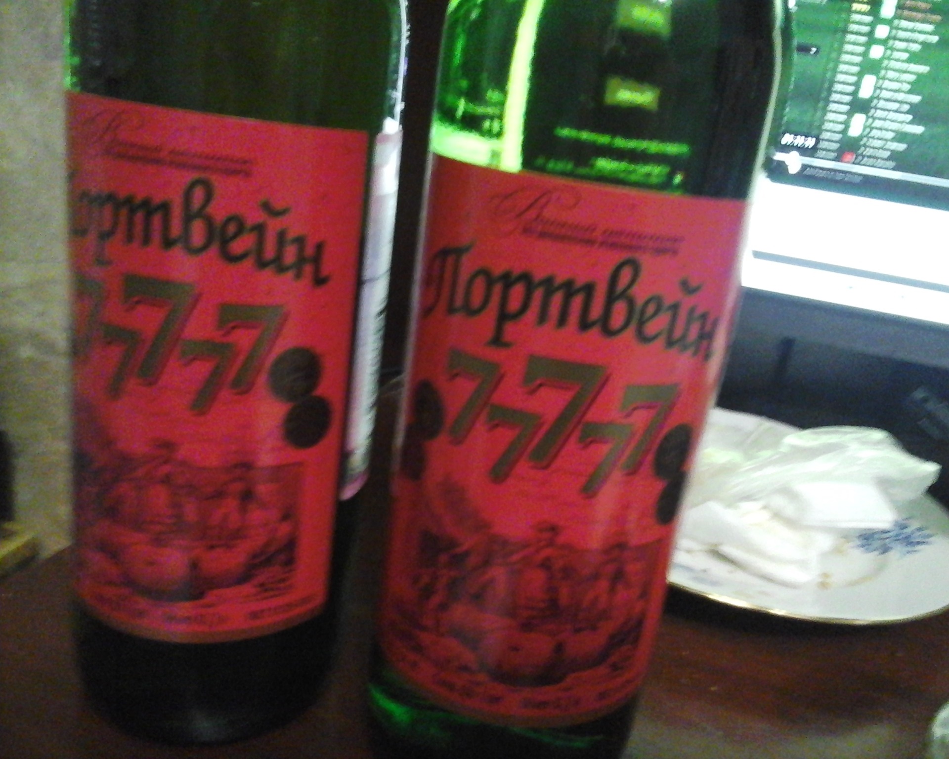 1) Портвейн 777 (с темно коричневой пробкой), приторный вкус, довольно негативная реакция желудка на подобное издевательство, пить не рекомендуется. 2) Портвейн 777 (с прозрачной пробкой) по запаху, и по вкусу чувствуется больше спирта, что несомненно идет на пользу. Пьется легко, уносит быстро. 3) Портлейн 72. Почти как предыдущий, но чувствуется большая сивушность, что-ли. 4) Портлейн 777. Сферический пиздец в вакууме, отвратительно воняет, на вкус еще хуже.
