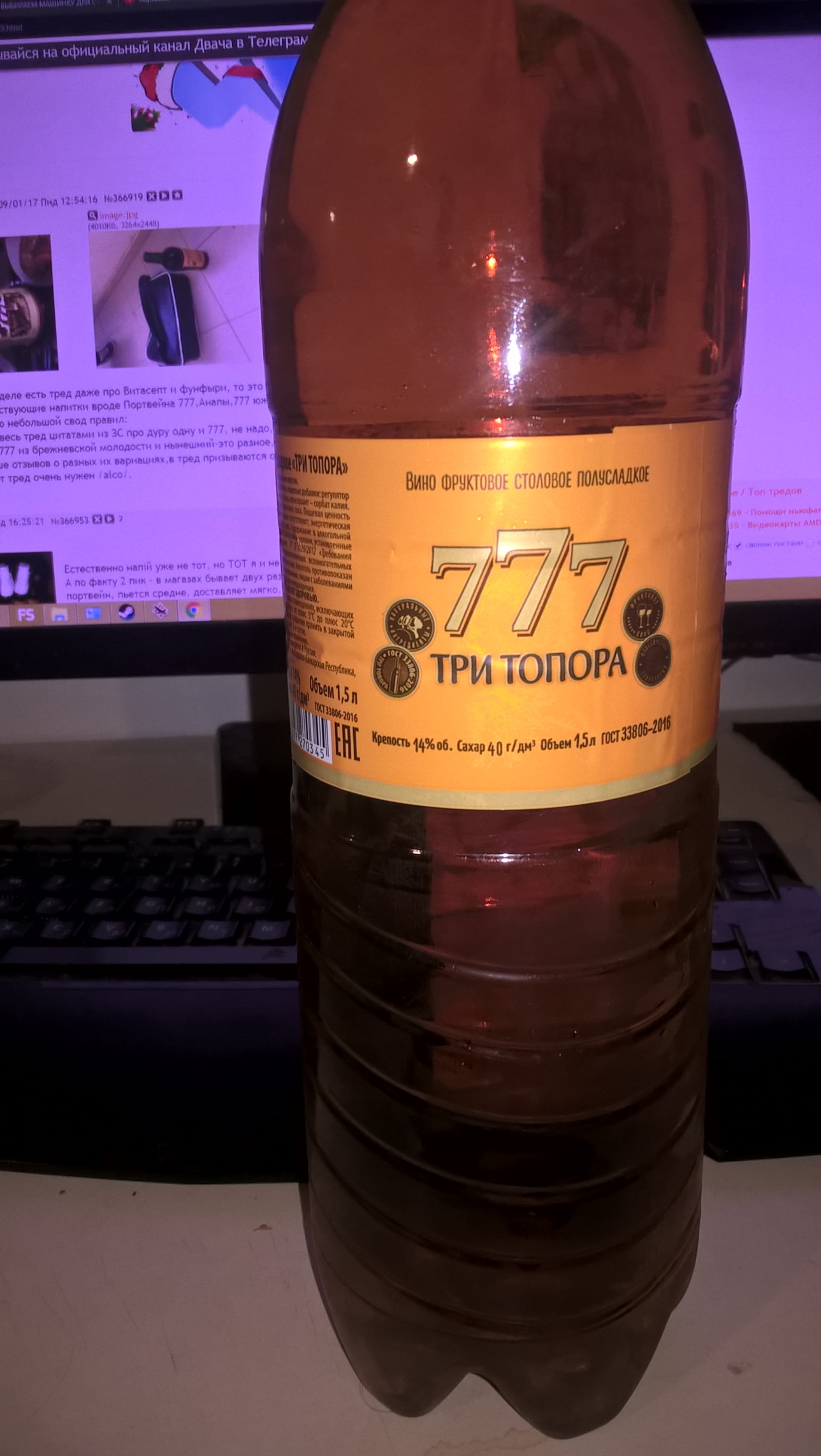 Уж коли на этом разделе есть тред даже про Витасепт и фунфыри, то это должно быть уж точно! ИТТ обсуждаем действующие напитки вроде Портвейна 777,Анапы,777 южного и так далее,их цены,эффект и вкус. Так же прикладываю небольшой свод правил: 1.Не надо засорять весь тред цитатами из ЗС про дуру одну и 777, не надо,будьте ж вы людьми. 2."Уже не тот". Да, 777 из брежневской молодости и нынешний-это разное,но если есть охуительная история про него из тех лет-милости прошу к нашему шалашу! 3. Как можно больше отзывов о разных их вариациях,в тред призываются опытные и разборчивые портовые шлюхи пираты по морю сознания. И мне кажется, этот тред очень нужен /alco/.