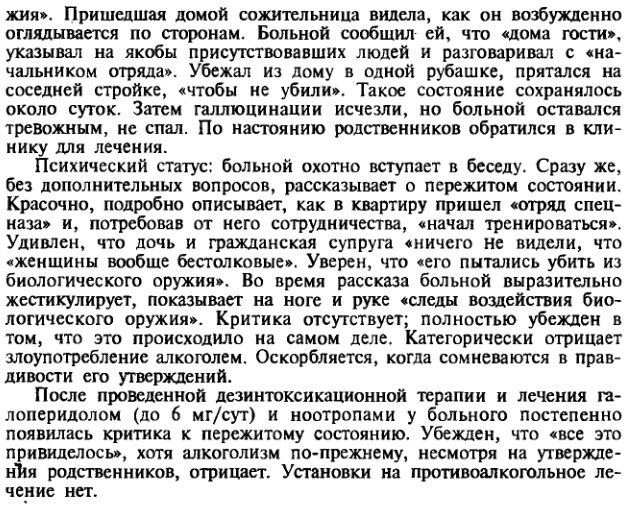 1. Группа с минимальным сроком ремиссии – эту группу составили больные с диагнозом F.10.210 (воздержание в условиях стационара, исключающих употребление алкоголя). Клиническая картина, характеризующая состояние этих больных, включала проявления лабильной аффективной симптоматики (снижение настроения, тревога, чувство вины), дисфорические, астенические, апатические нарушения, часто и легко возникающее влечение к алкоголю, а также остаточные элементы вегетативных дисфункций – нарушения сна, снижение аппетита, головные боли и т.п.