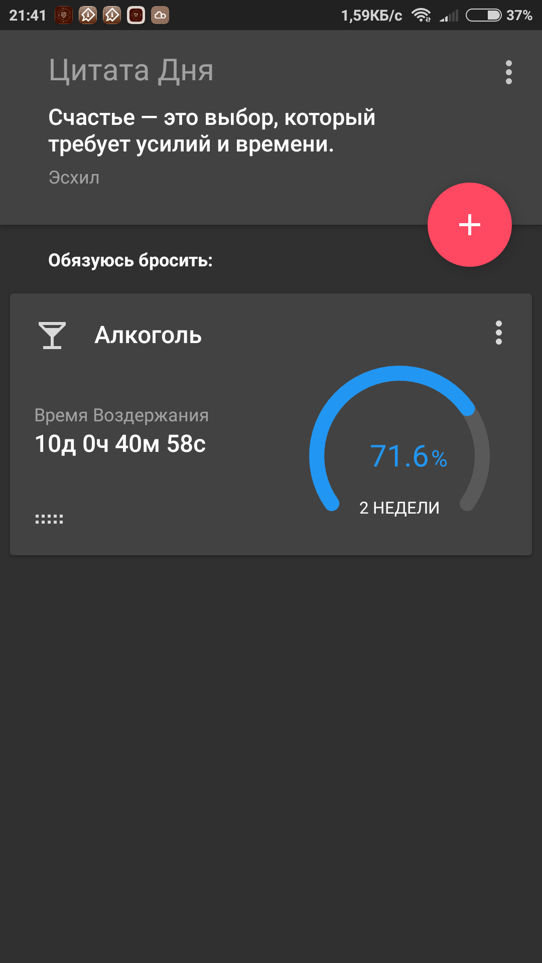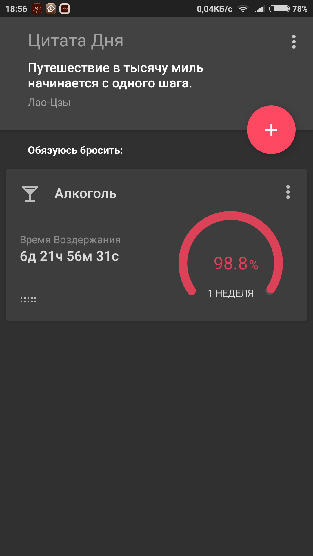 >>532636 "Не пью!". Я в завязкотреде у другого анона его увидел, но у него айфоновская версия, и она намного информативней и в целом лучше. А а на Андроиде обрубок, только время отслеживает. Но хотя бы для этого можно поставить.