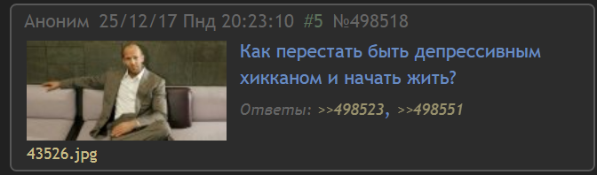 >>541930 Я непью долго. Факты таковы. 1.Твоя психиатрия и наркология тем более совковая никого не вылечила, никого. Хирурги лечат, терапевты лечат, наркологи и психоваторы не лечат, а ебут и без того разьебанны мозги. 2.Бытье субьективно, и все эти обобщения не выдерживают критики. Кто-то не доходит даже до 2ой стадии за всю жизнь, а кто-то в 23 жрет тормозуху и отьезжает и дело не в уровне дохода или соц статусе. Посмотри на того же гуфа, он ведь мажорик, а нарик. Нытян маргинал и тоже по сути нарик. 3.Есть такое понятие как обобщение и индукция. Простой пример прямого утверждения: если ебнуть по пальцу то будет больно. Это факт. Можно провести индукцию и продолжить "если ебнуть по гвоздю то будет больно". Это уже хуита. Это я к чему пишу, все эти речи и литература по бросанию она кривым путем ведет к тому что я выше обозначил как повод, не к мотивации, мотивация это волевая, а повод это против воли. Так вот ведет к тому поводу что если ты не бросишь то тоби пизда. Все спикерские речи аа, все это про одно и тоже - будешь пить окажешься в мусорном ведре. Но на деле это далеко не так, и работает это онли на тех недалеких кто не воспринимает инфу критический, не видит кривизны суждений в этом всем, поэтому ааа не для всех и хватит уже совать эти говенные пасты везде где надо и где нет, если тебе помогло то я за тебя рад, но это не универсальное средство, а ты уже заебал этой ссаниной из аа. Обьяснил максимально доступно.