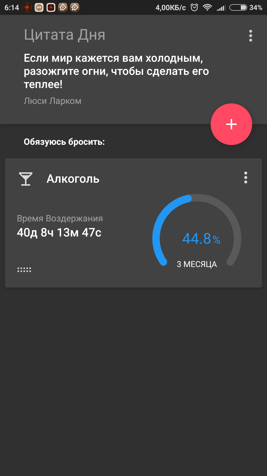 Прошла неделя восторженного воздержания. Все пришло в норму: сон, тело, дела. Сегодня восьмой день. Настроение - гавно. Знаю, что не пить - ваще круто. Но с надеждой жду, что кто-нибудь позовет в ВК выпить :( Ебаные качели.
