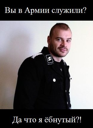 >>557849 У Тесака эмоционально-волевая неустойчивость, он комиссован из армии по белому билету. Хуесос-шизик его и формит, только один агрессивен и в жизни, а второй только в интернете