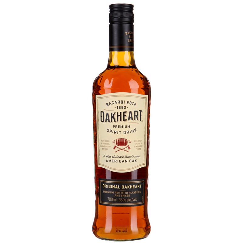 Сразу тогда начну так сказать. Ром "Oakheart Original" Золотой, пряный, в составе мёд, ванилин и корица, всё как полагается. Очень неплохой вариант. Один из немногих пряных ромов, которые можно пить в чистом виде - он и так сластит во вкусе. Если будете брать колу, мешайте 1:1 максимум, потому что иначе охуеете с количества сахара. Карамельный аромат, видимо бочки из-под бурбона сказываются. В голову дает приятно, послевкусие мягкое, на языке не жжется и в целом не требует запивать водой. На утро чувствуешь себя хорошо, видимо сказывается, что 35%, а не 40%. Брал в местном винном магазинчике, но думаю, что и в гиперах должен быть. 900 рублей за 0,7. Вердикт: заебись.