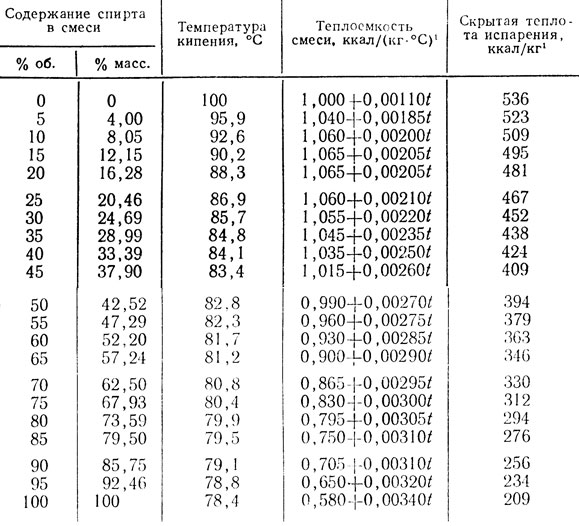 По табл. П1 на пересечении графы 83,5 % и строки +5 находят, что искомое содержание спирта в растворе равно 87,64 %.