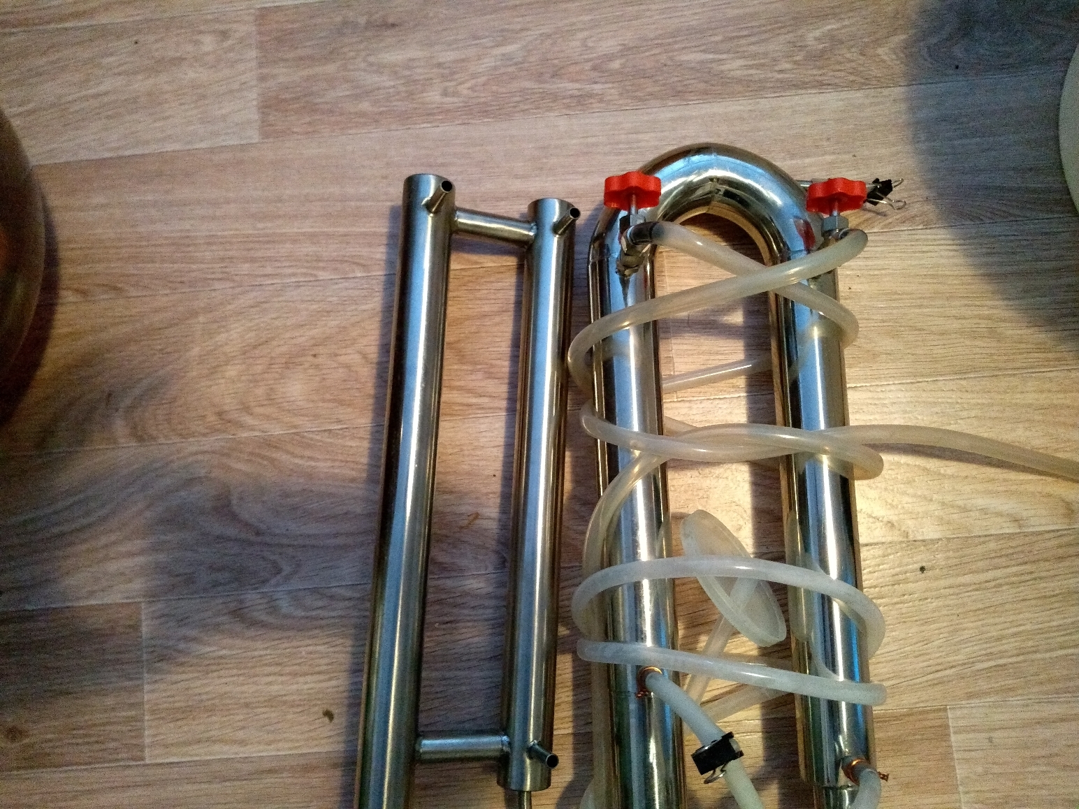 Резюме - в первом случае тебе понадобится обычное медное ведро, а во втором такое же ведро, но с трубой. Так зачем же тогда нужен такой аппарат как у тебя, есть над чем задуматься.