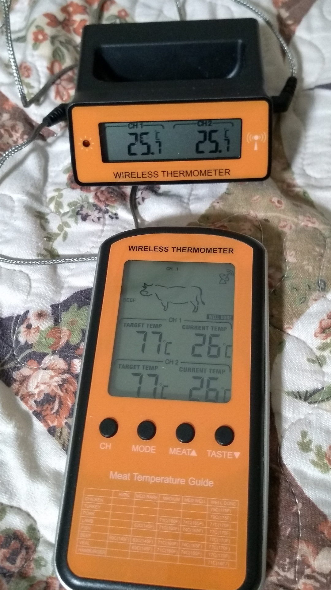 >>839015 В самом пищалки нет, пищит пульт. Точность как у дешевых электронных. Щупы не герметичны в месте входа провода, боятся пара. В принципе сойдёт, чтобы постоянно к аппарату не бегать.