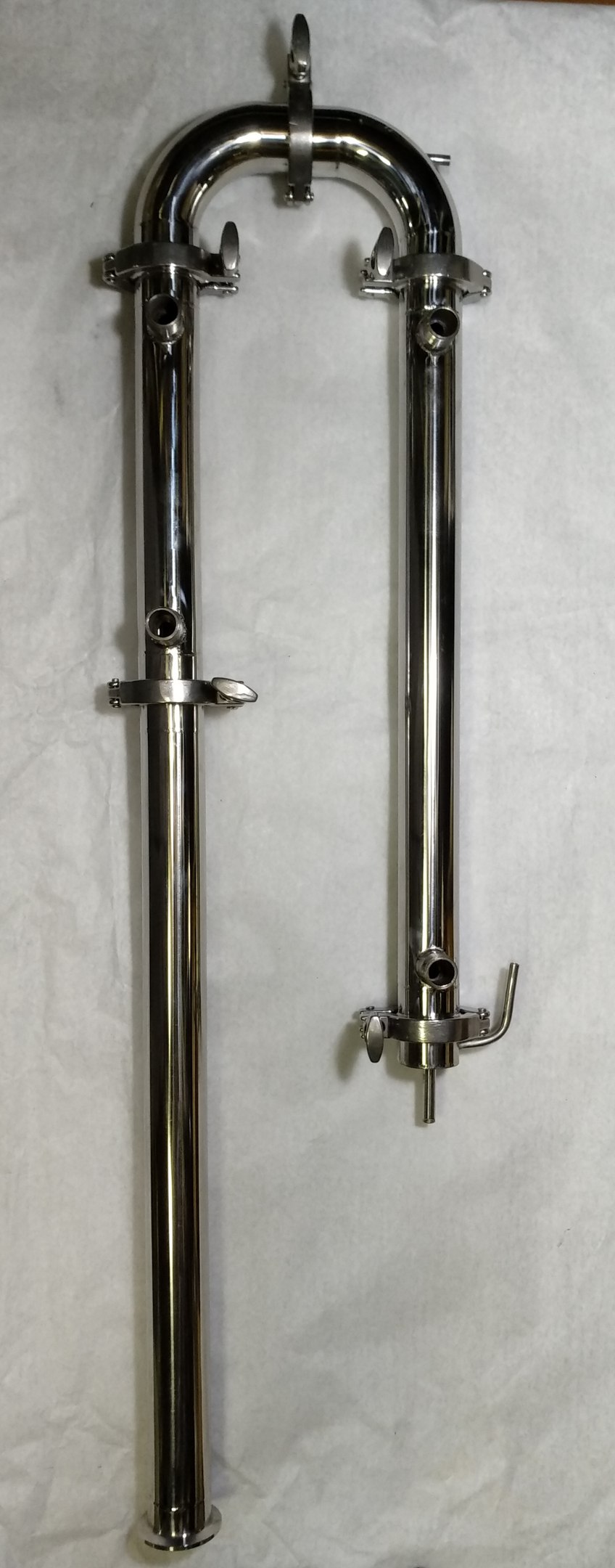 Вообще нормальная тарельчатая колонна должна быть: - колпачковой. - колпачки с неснижаемым уровнем, а не как у Шульмана. И с нормально расчитанной геометрией. - уровни не менее двух диаметров в высоту, чтобы избежать брызгоуноса. - металлической со смотровыми стеклами. - иметь запас по мощности от проектной рабочей в два раза вверх - иметь на каждом уровне две крана - на отвод в куб и на отбор продукта. Это либо самому надо заморачиваться и строить, либо стоить будет как крыло от самолета. Упрощенный вариант, без кранов, в продаже есть, но это уже сильно не тот инструмент.