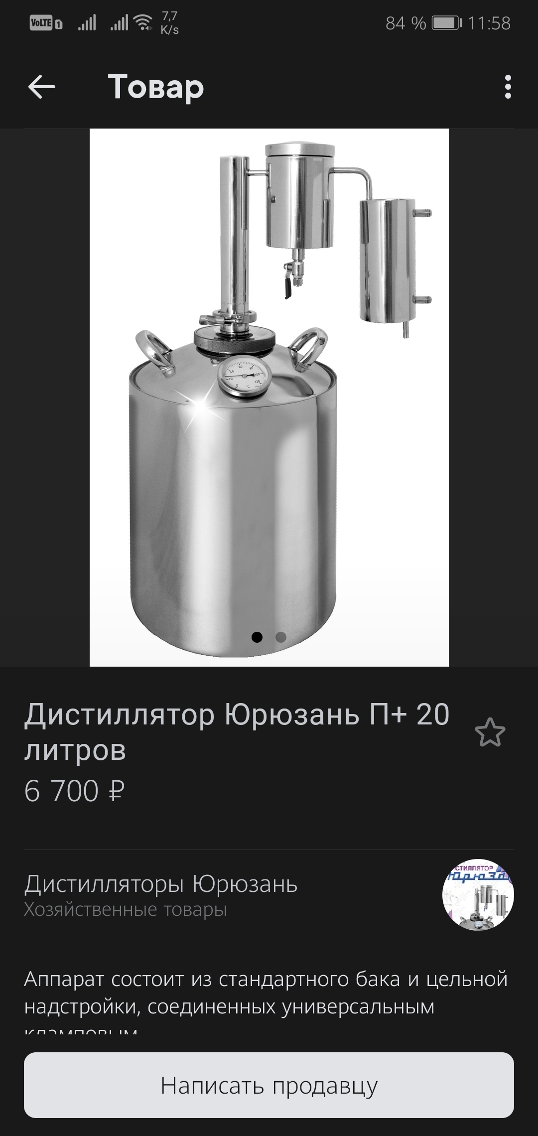 Такой дистиллятор как у меня ( на пике) стоит 3370р.