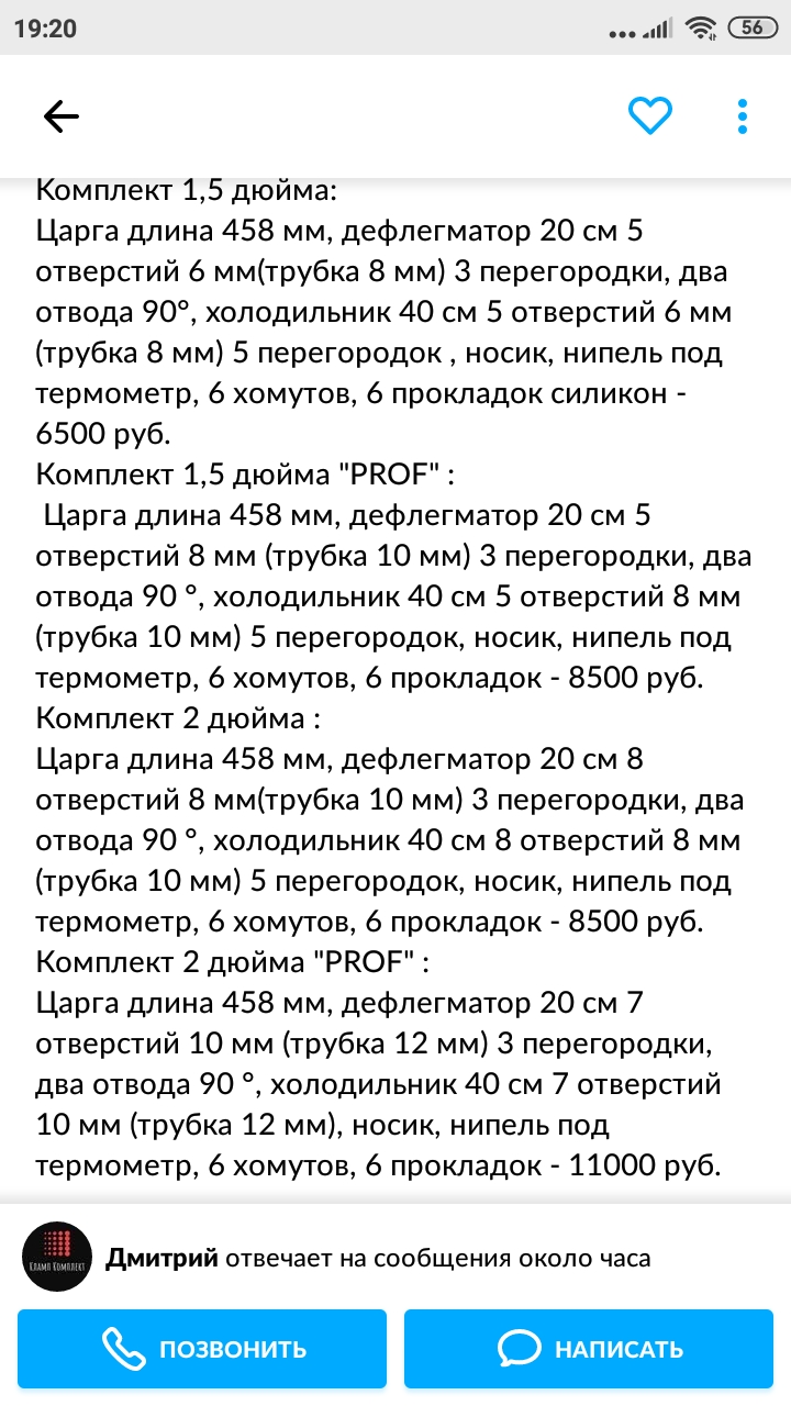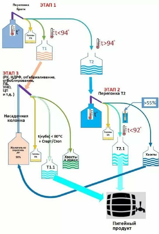 >Но там была продавщица, которая особо не разбирается в этом всём и она не смогла таки ответить на вопросы. >- дефлегматор или сухопарник, что лучше? Дефлегматор. Сухопарник прямо вреден, обычный холодильник без сухопарника лучше чем с сухопарником. >- много ли воды тратится на охлаждение перегонки? Зависит от мощности холодильника, температуры воды и мощности аппарата. От 20 до 100 литров в час. Обычно на рынке аппараты жрут 30-50 литров в час. >- для приготовления этого нужен самогонный аппарат или оно само по себе делается? Не пойму, что есть "сбродите сусло" https://5075.ru/catalog/nabory/nabor_sozday_svoe_vino_5075_sliva/ Это набор для домашнего сливового вина, точнее его имитации (там сироп и прочее в составе, не только слива). Сбродить - значит задать дрожжи и дать им отбродить. У тебя получится типавино по инструкции. Для этого самогонный аппарат не нужен. Но потом это "вино" можно не пить, а перегнать и получить самогон, напоминающий сливовый. Посмотри на ютубе канал Саши Мочалова, он с таким набором возился как раз. >- колонна это уже видимо перебор для начального уровня и нужна только когда чел поймет, что ему заходит процесс варки? Имхо, колонна для начинающего лучше, потому что меньше шансов проебаться и проще наладить повторяемость. Это потом, когда научишься, в том числе брагу чисто выбраживать - тогда можно на простой прямоток идти.