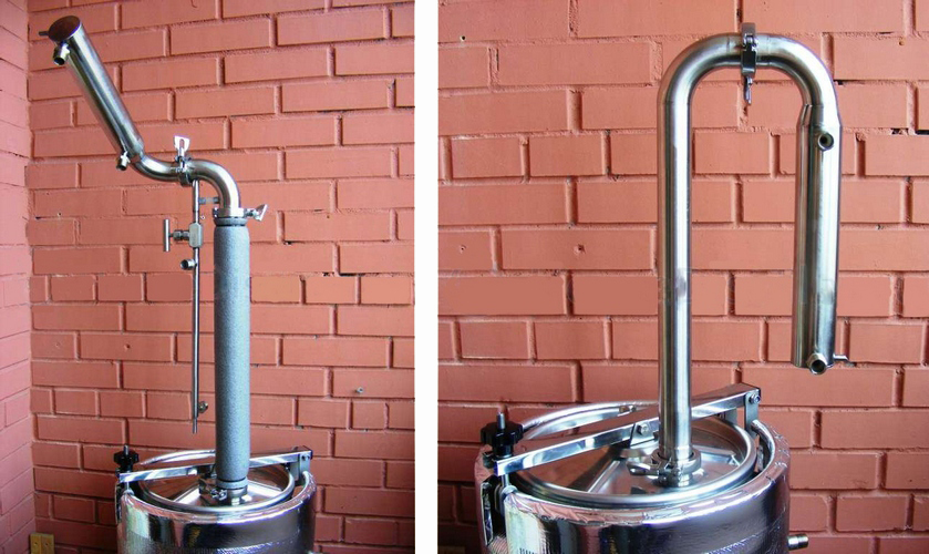 >>900695 Сухопарник топ, но, есть нюансы. Он не должен быть обычной жестяной банкой, такой действительно скорее вреден, чем полезен. А какой полезен - прозрачный с термометром и сливом флегмы в куб или наружу на горячую. Чем полезен: 1. Для ароматизации, можешь класть в него что хочешь (даже насадки Панченкова пихать можешь), ароматизация на горячую и мыть удобно, плюс можно снять и заменить во время прогона не трогая сам куб - если конструкция позволяет. 2. От заброса флегмы защищает, сразу увидишь по цвету. И не только, от пригорания сусла тоже. В прозрачной колонне сложно увидеть - мало флегмы. А в сухопарнике увидишь как флегма цвет меняет. 3. Стабильная температура перед холодильником, как не крути мощность - сухопарник сгладит температуру. 4. Что-то еще, но уже не помню. А, насчет размазывания голов - если ты их отсчитал, то на горячую можно слить с самого сухопарника, если нет обходной трубы (но лучше бы она была). Но, это как ты понимаешь - не обычная фляга с двумя входами.
