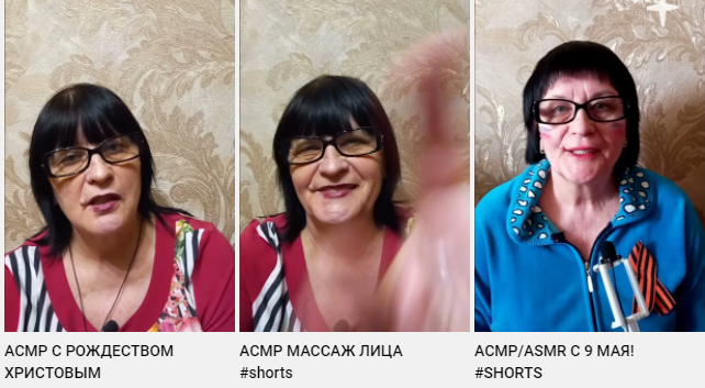 Очень нравится непринужденный АСМР от старушек или взрослых женщин, вообще выбешивают все эти чистые звуки и когда слышно как ресницами хлопают. Нравятся "домашние" АСМР на не особо качественные микрофоны. Вообще очень бы хотелось собрать тут ссылки на каналы АСМРтисток пожилого и взрослого возраста.