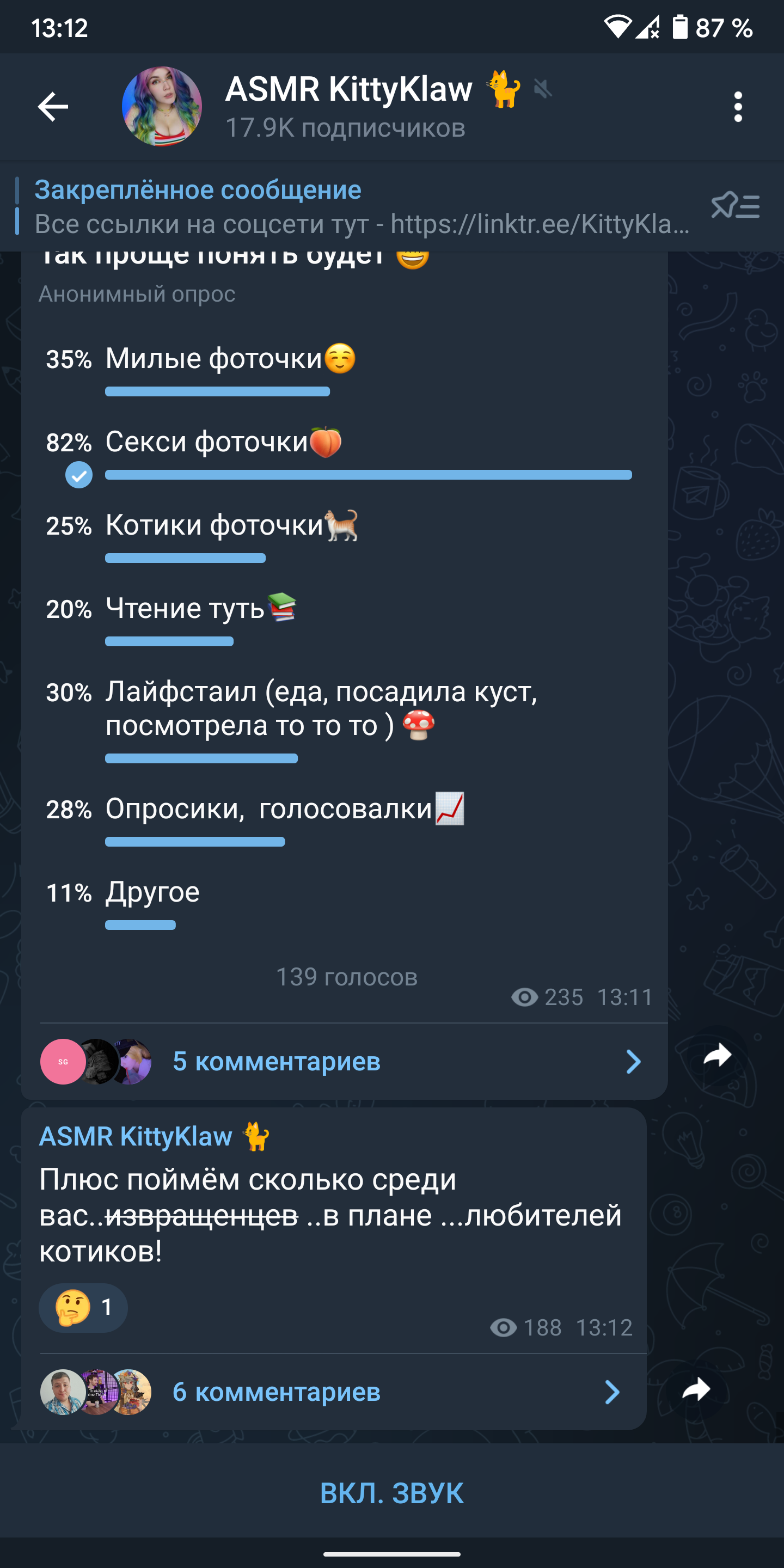 >>106282 У Asmr Mood подглядела такие вставочки чаёк и тп., а то раньше то не старалась так, пресная скучная театральная хуита, лучше лизание ушей по эмоциям. Имхо