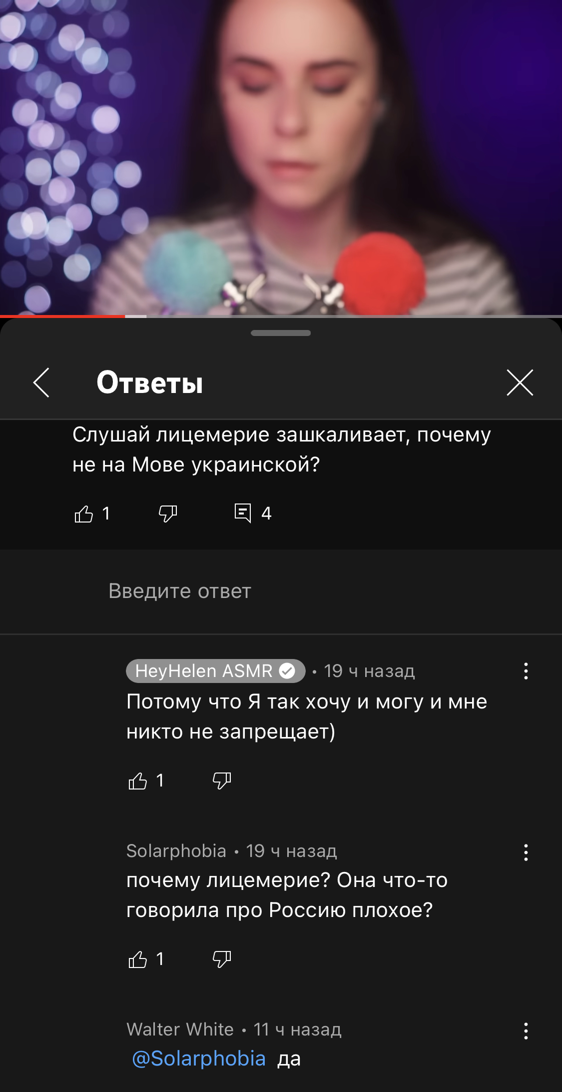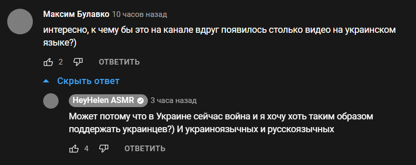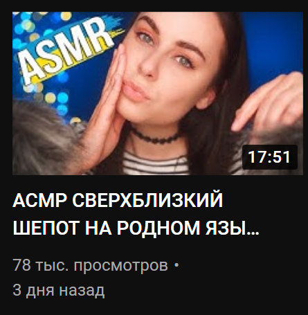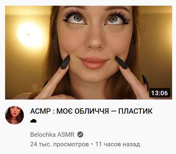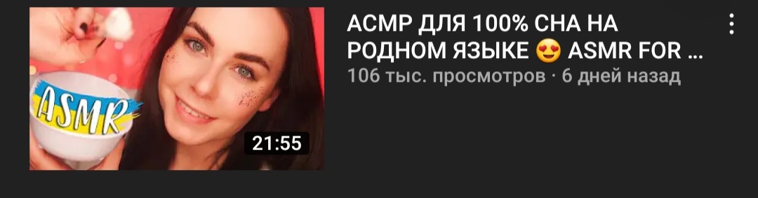 Хуй знает, чё вы все разнылись. АСМР на украинском - топ. Когда слушаешь русскую речь, постоянно испытываешь кринж. А украинский звучит знакомо, но при этом нихрена не понятно, что она там говорит. Это прям самое то.