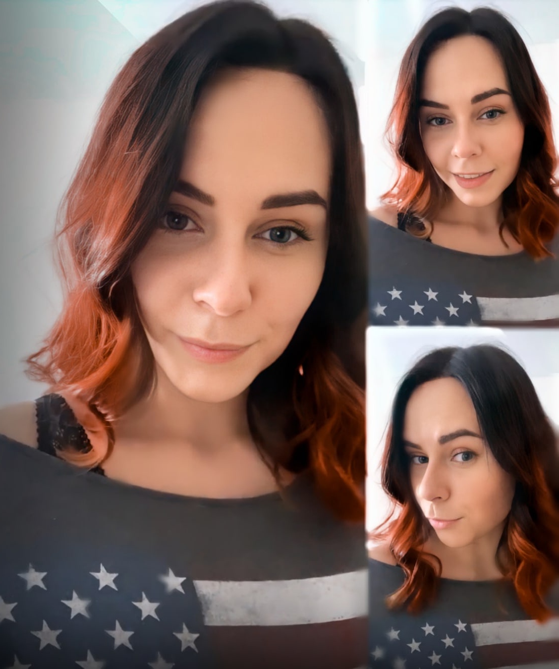 без фильтров, обработки , зажратка во всей красе, озлобленный меркантильный оскал, я помню как она на стримах говорила : «я б тебе ответила без камер бы», быдлуха