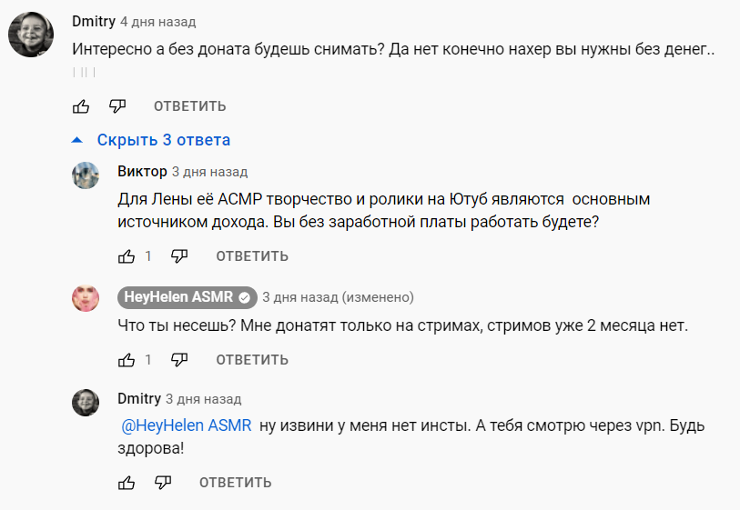 не стыдно видимо)) и здесь пипл хавает и до последнего будут пизду лезать своей ебанутке и убежать что нет , лена не такая, она просто хочет порадовать нас)) баблишка она хочет и все)) как прежней жизни уже для нее не будет, бабло от россиян перекрыто санкциями, никаких больше сладких донатящих ананасиков и ежиков в тумане, теперь только работать идти, а это тебе не снимать хуиту, а потом жаловаться на то что обижают в комментах и просмотров мало(